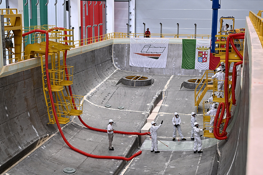 中外舰闻 烽火问鼎计划 每天认识一件兵器 不常见到,意大利🇮🇹海军CNG/C海岸扫雷舰(图1)的建造施工现场照片(图2和图3),这种全玻璃钢舰壳的特种战舰的建造工艺确实和钢制战舰完全不同。