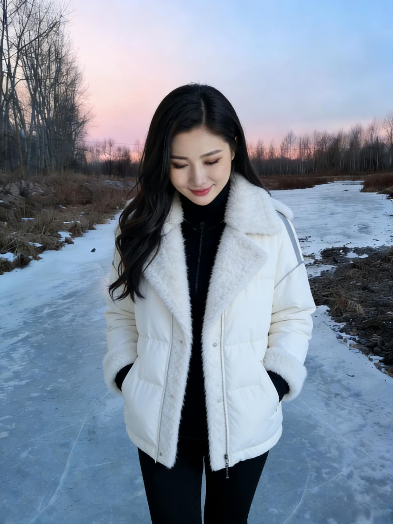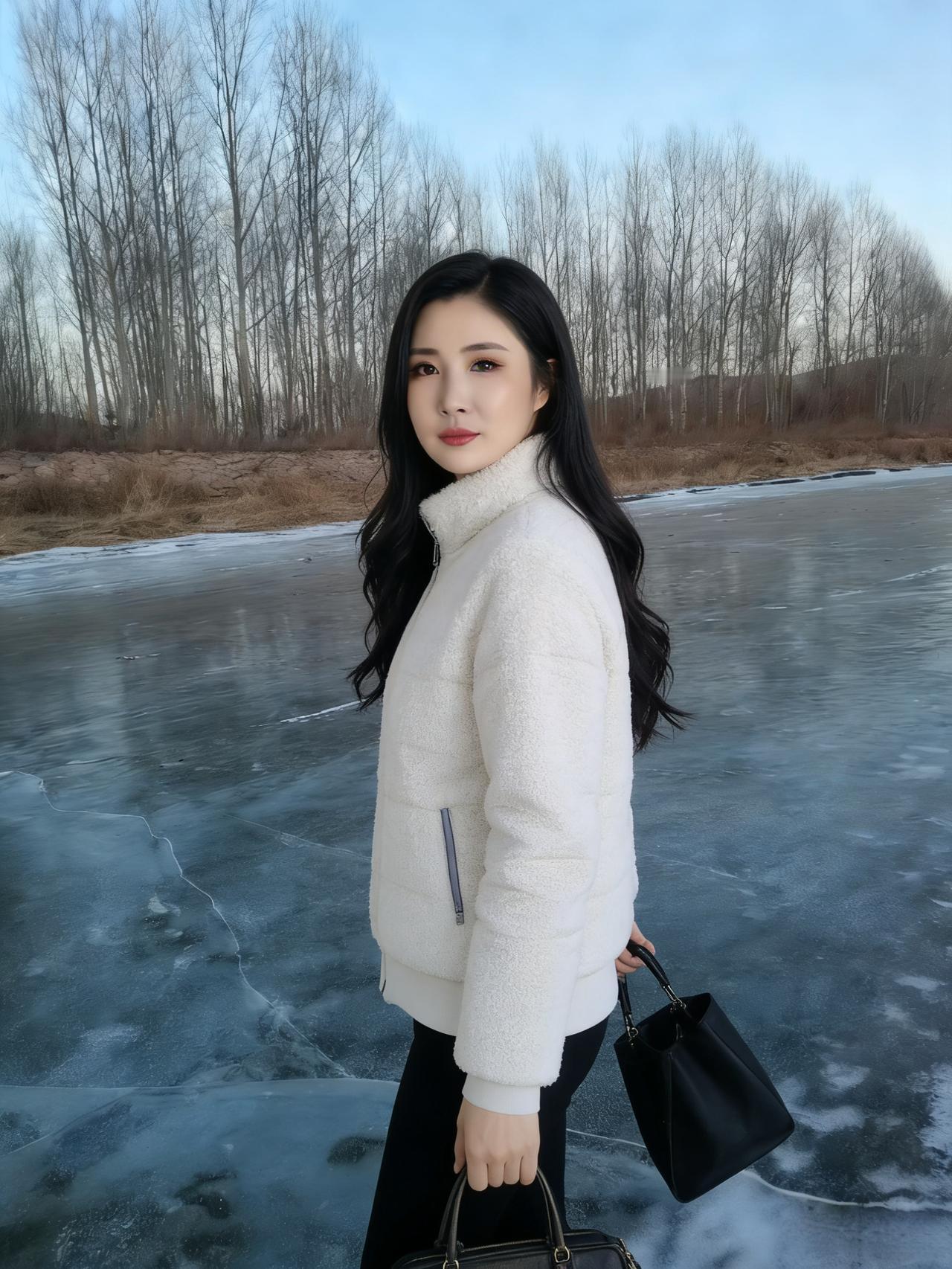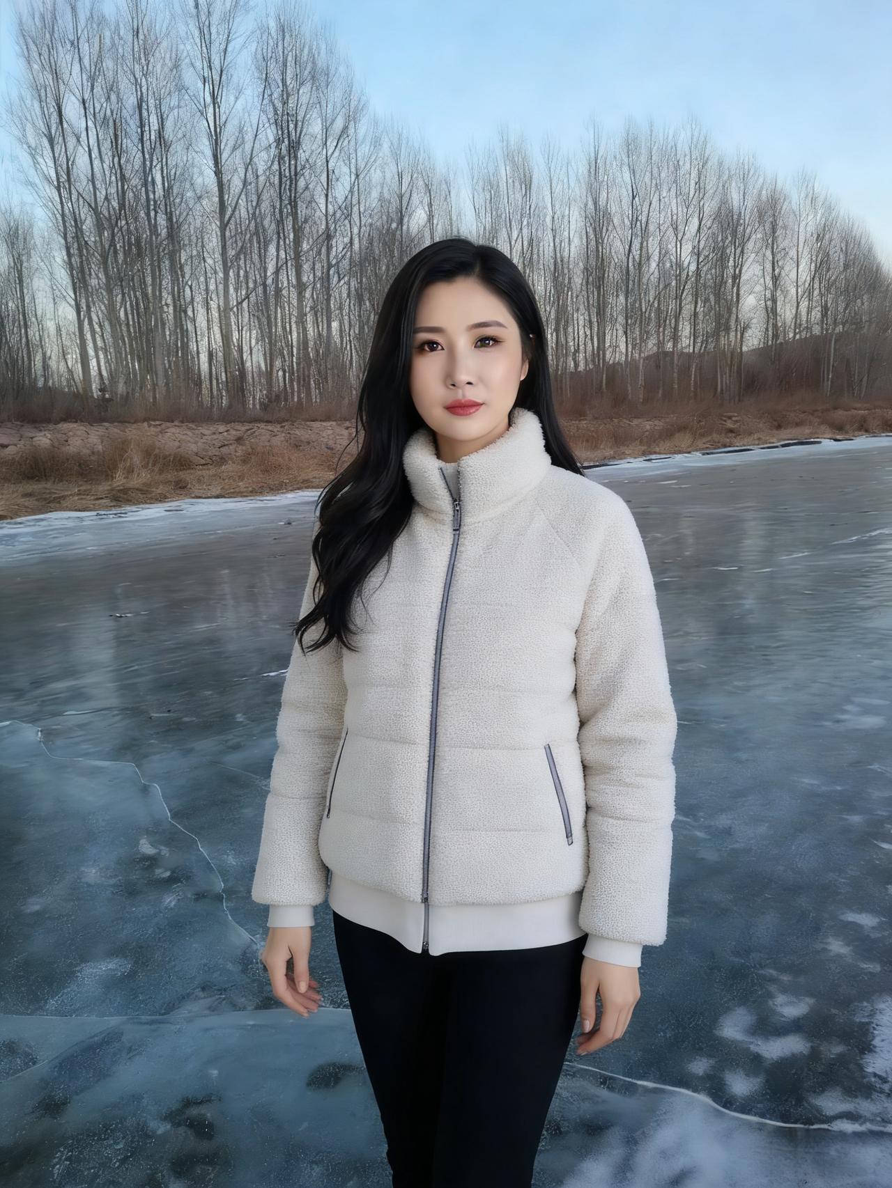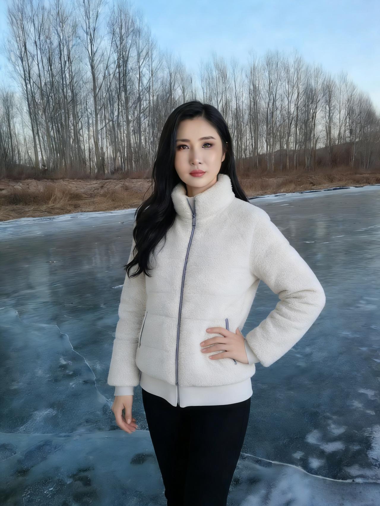 河风把最后一波涟漪摁进冰层 暮色就顺着白桦的枝桠漫下来 你站在那里,像雪落在雪上 白外套的绒毛沾着细碎的星子 ~ 冰面是块磨旧的镜子 照见云的影子,也照见你垂睫的弧度 风掠过发梢时,带起细碎的声响 比远处林子里的雀鸣更轻 ~ 我们都不说冷,只看粉紫的霞光 如何在冰裂纹上流淌 你把手揣进口袋的样子 让整个冬天都软了下来 ~ 后来暮色沉得更低 你转身时,衣摆扫过薄雪 我忽然懂了,有些温暖 不必等春天,不必等炉火 此刻就落在冰面,落在你含笑的眼尾