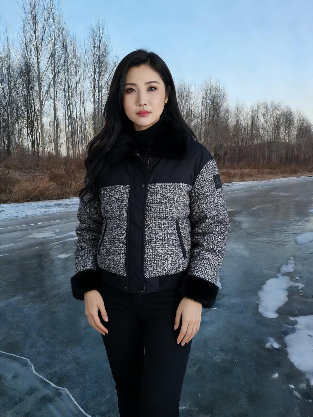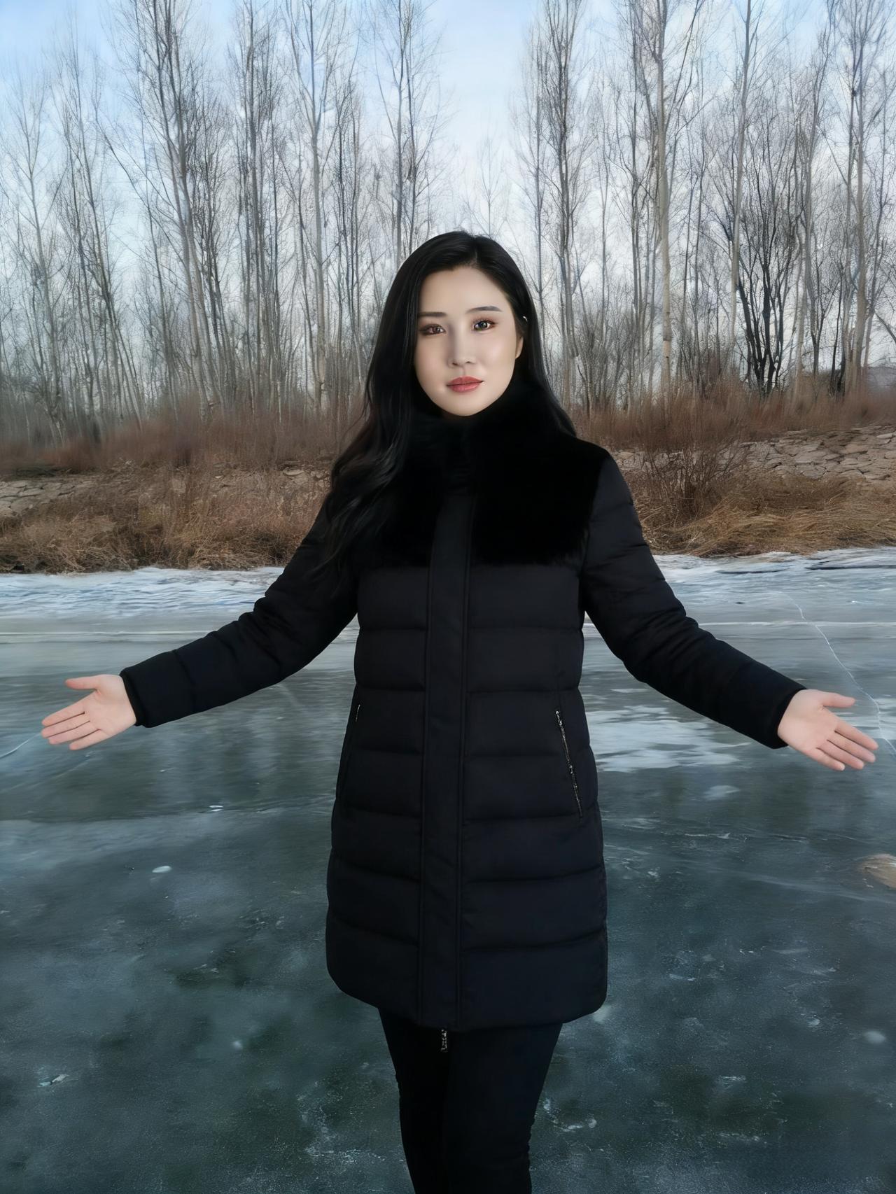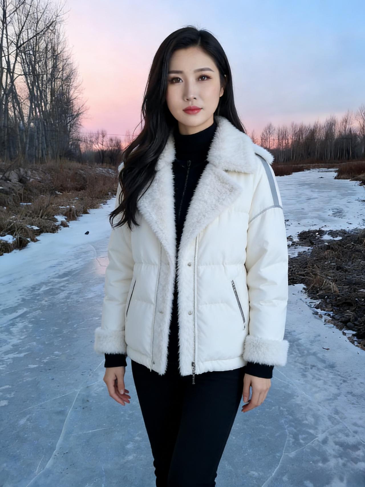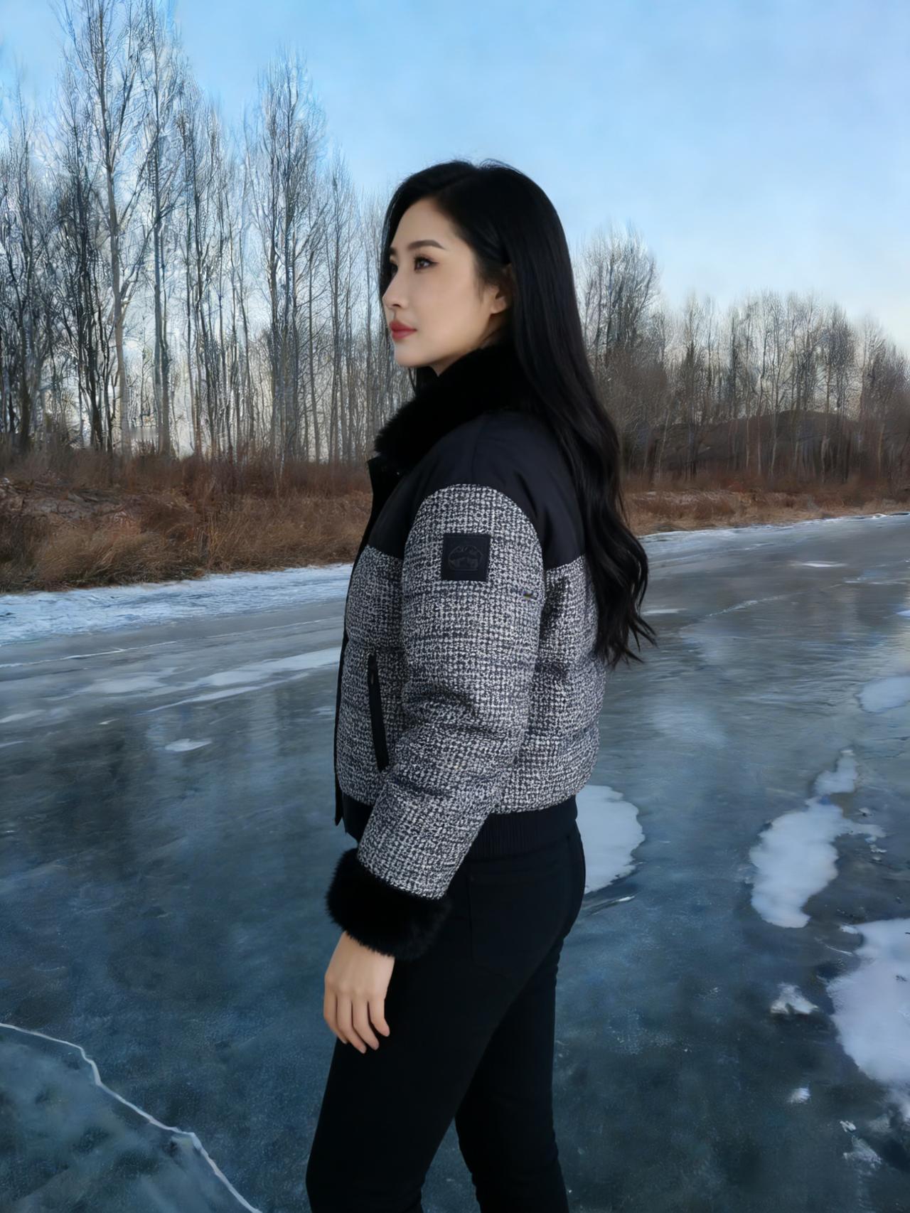 河风把最后一波涟漪摁进冰层 暮色就顺着白桦的枝桠漫下来 你站在那里,像雪落在雪上 白外套的绒毛沾着细碎的星子 ~ 冰面是块磨旧的镜子 照见云的影子,也照见你垂睫的弧度 风掠过发梢时,带起细碎的声响 比远处林子里的雀鸣更轻 ~ 我们都不说冷,只看粉紫的霞光 如何在冰裂纹上流淌 你把手揣进口袋的样子 让整个冬天都软了下来 ~ 后来暮色沉得更低 你转身时,衣摆扫过薄雪 我忽然懂了,有些温暖 不必等春天,不必等炉火 此刻就落在冰面,落在你含笑的眼尾