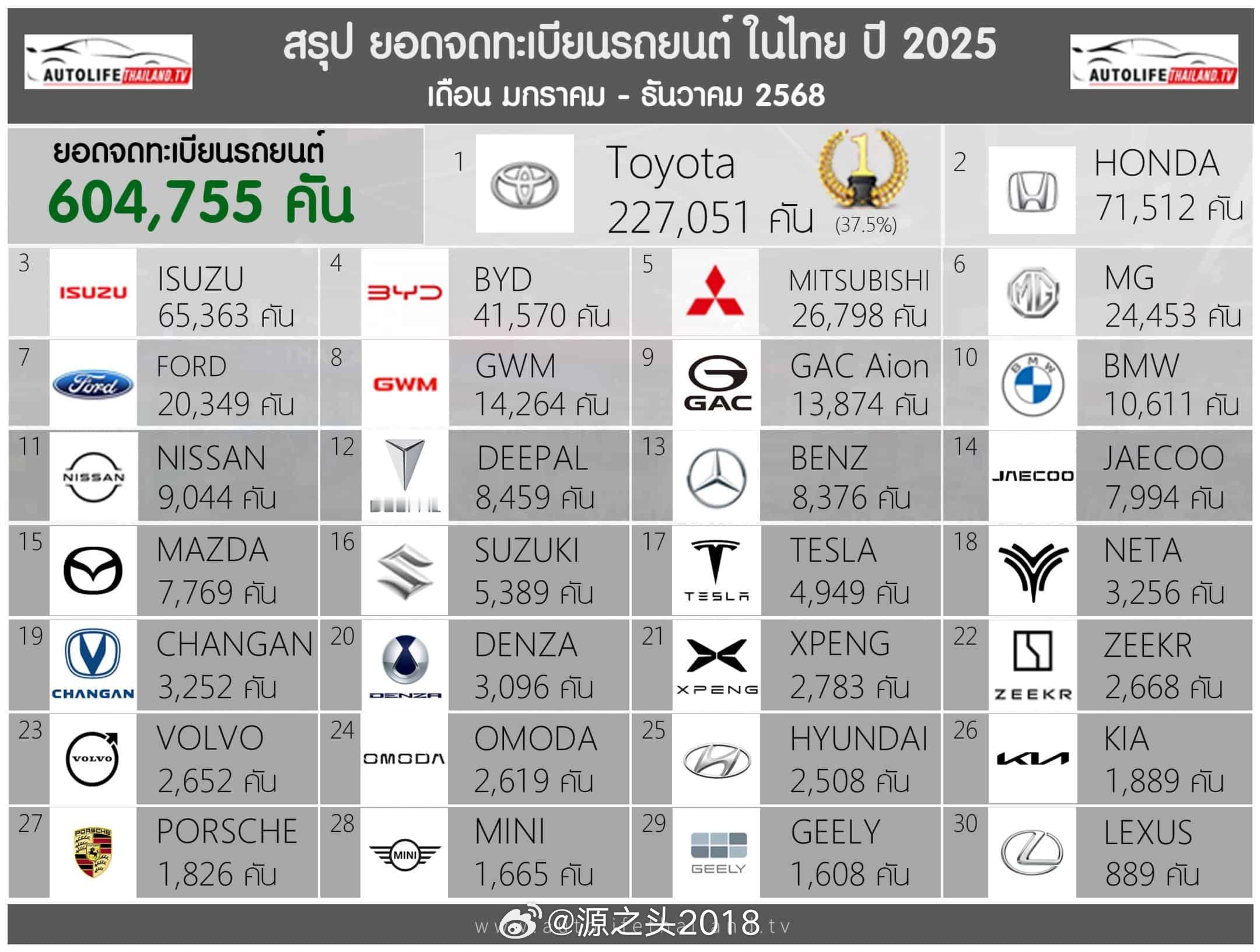 2025年,“比亚迪+腾势”泰国总销44666台,排第四!