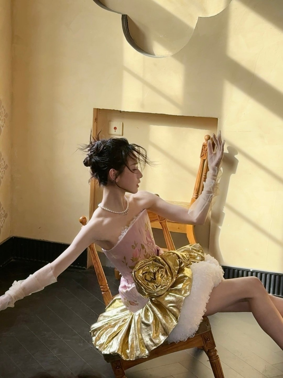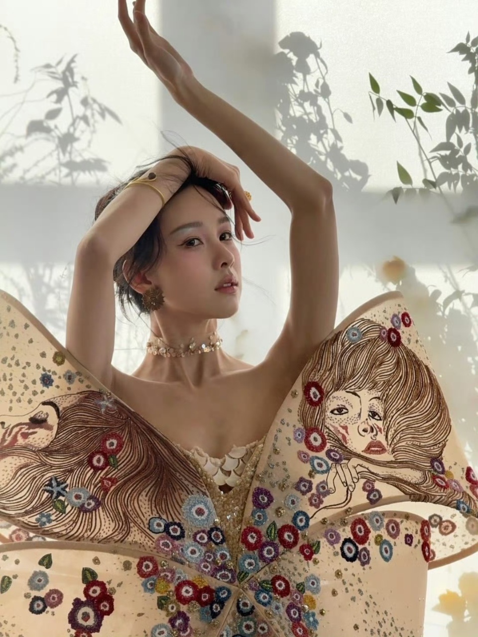 《花襟映春光》风裹着草木的清甜漫过园径,她立在日光里,旗袍的红白像把春庭花