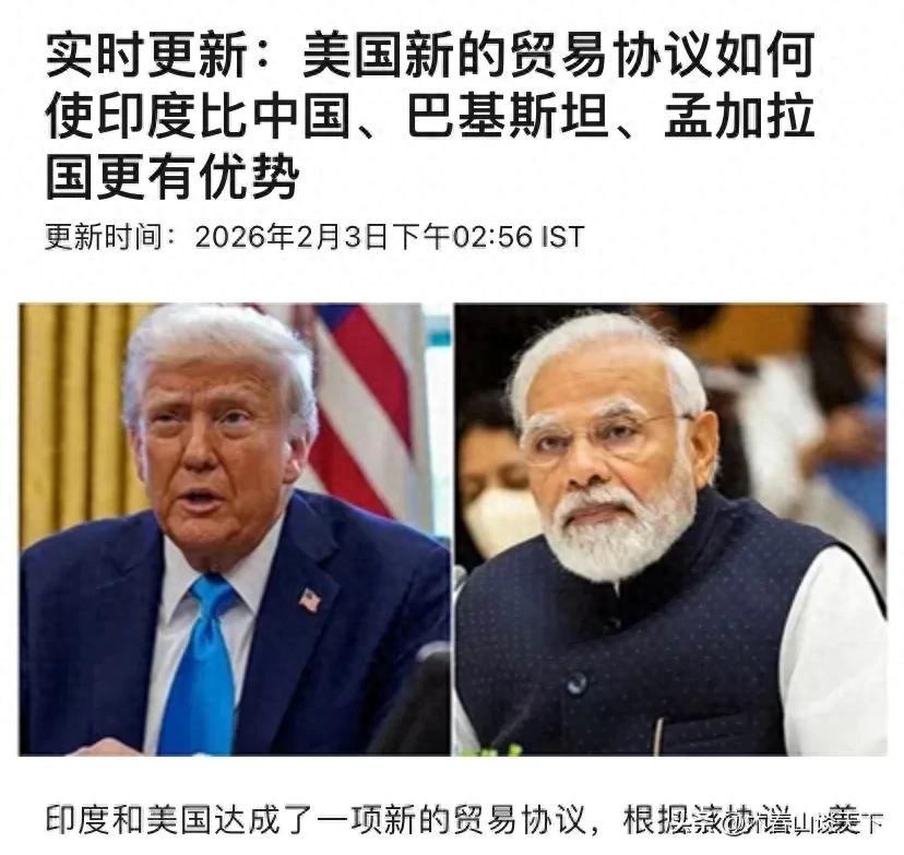 印度人兴奋:关税比中方少50%,特朗普:我和莫迪是能成事的人 持续约半年的美印贸易纠纷日前终于落下帷幕。根据特朗普的说法,美国对印度商品的关税将从50%降至18%,但印度需要付出停止购买俄罗斯石油、降低对美贸易壁垒、采购超过5000亿美元美国产品的代价。 这笔交易是否划算?因特朗普现在放出来的消息过于笼统,目前还真不好判断。毕竟他连新关税生效日期、印度购买俄罗斯石油的截止日期、贸易壁垒削减的具体内容都没有说清楚,外界甚至担心这又是特朗普借社交媒体进行的新一轮“极限施压”。 但即便如此,一些印度人还是无比兴奋。他们认为美国今后对印度加征的18%关税虽然仍然比较高,但是这比巴基斯坦商品出口面临的19%、越南和孟加拉国面临的20%关税要低,这让印度商品和这些国家的商品相比更有竞争力。而他们尤其关注中国,认为中国面临着美国37%的关税,以百分比计算,印度面临的美国关税比中国少了50%。 考虑到美印贸易协议至今仍未公布具体细节,因此不好说这群印度人欣喜的协议内容能不能落到实处,届时特朗普可能再一次对印度翻脸。但就算18%的关税最后成功落地,印度最好也不要高兴得太早。 因为特朗普已经把话挑明,美国降低对印关税其实是一笔交易,换取的是印度对美做出三大让步。而这三大让步对印度而言就算没到伤筋动骨的程度,其影响也不容忽视。 若停止购买俄罗斯的廉价石油,印度一整条化工产业链将不可避免地面临成本上涨,这会进一步压缩相关企业的利润,并最终反馈到市场上。而降低对美贸易壁垒、采购超过5000亿美元美国产品对印度经济的影响则更为深远。 要知道这次特朗普规定印度今后需购买的美国产品集中在能源、技术以及农产品上,这是特朗普支持者最多的产业,有助于帮助他在中期选举里获胜。但问题是印度政府和企业买的美国货越多,印度本土卖出去的就越少,尤其是在农产品领域。 这可是一笔价值5000亿美元的采购计划,一旦付诸实践,印度能从对美出口上把额外成本给赚回来吗?就目前情况来看难度相当之高。 至于印度人对中国所面临的美国关税“幸灾乐祸”,未免有以己度人之嫌。数据显示,2025年中国贸易顺差再创新高,规模达1.189万亿美元,这彰显出“中国制造”在全球范围内的竞争力。 更值得关注的是,这是在美国发动对华贸易战之后,中方在外贸领域取得的成绩。2025年中国对美出口下降20%,导致对美顺差较2024年下降22.3%,最后却仍然实现了超万亿美元规模的贸易逆差,这证明中方已经在美国之外开拓了新的市场,足以弥补美国滥加关税带来的损失。 所以即便印度面临的美国关税比中国低50%,也未必就能给印度制造带来多大的竞争力。更何况这份美印贸易协议也得能落实才行。诚然,特朗普在社交媒体上盛赞莫迪,称“莫迪总理和我是两个能完成事情的人”、这笔贸易协议是“出于友谊和尊重”达成的。截至当地时间2月2日下午,白宫尚未发布总统公告证实这份贸易协议的存在,而印度商务部和外交部、俄罗斯驻美国大使馆、白宫发言人均拒绝就此事提供更多细节。 这种反应对于一份涉及几千亿乃至上万亿美元的贸易协议而言,实在是有些不同寻常。结合特朗普之前就有在社交媒体上放假消息的行为,这次的美印贸易协议在正式被双方政府签署之前,都还有付诸东流的可能性。 总而言之,在特朗普重返白宫之后,美国政府在对印关系上做出了重大调整。之前拜登政府愿意拉印度组建小团体、搞那个“四方安全对话”,是因为白宫想借此遏制中国、在中国周边扶持一个合作伙伴,为此他们甚至愿意对印度购买俄罗斯石油睁一只眼闭一只眼。 可现在特朗普政府已经拿关税对印度施压、不许印度购买俄罗斯石油了,这足以说明美印关系最起码短期内很难回到过去那种状态。 有鉴于此,印度最好还是别沉浸于这份贸易协议会如何增进美印关系,转而认真思考特朗普政府接下来还会做出哪些针对印度的事,做到有备无患。否则真等到特朗普重新对印度施压,届时莫迪手里恐怕不会再有可以打出去的牌了。