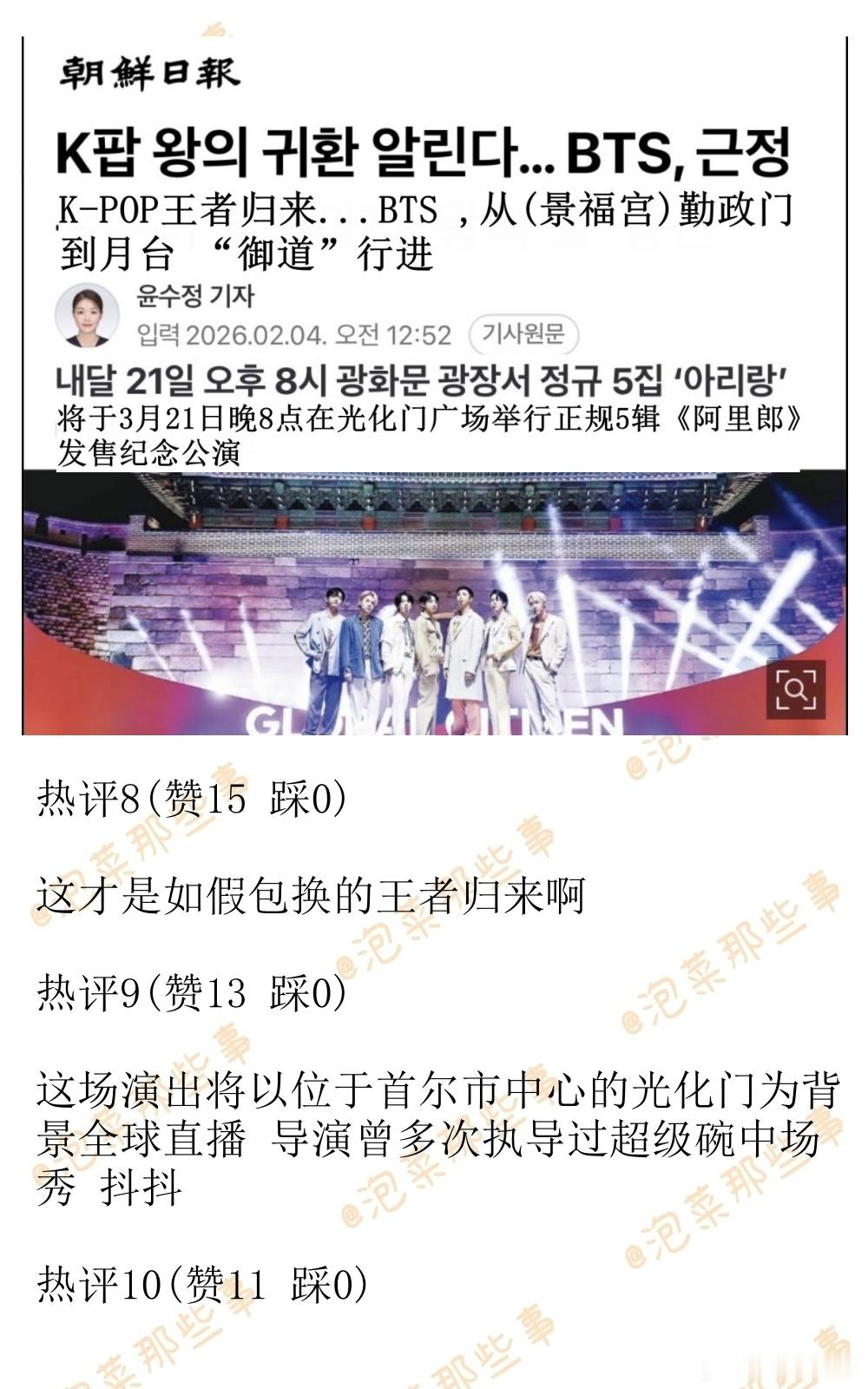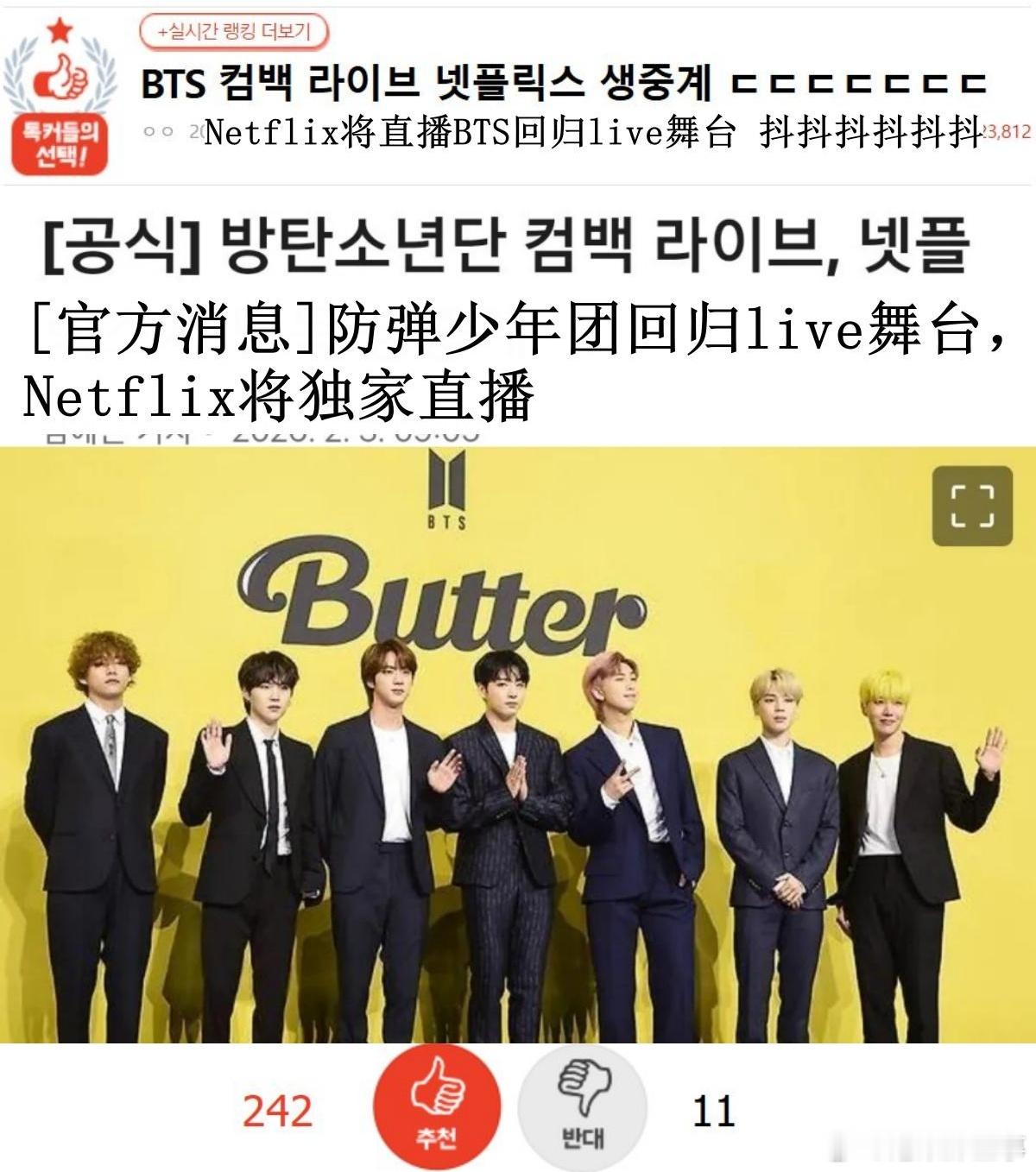 🔥韩网热帖评论翻译🔥网飞将全球直播BTS回归舞台cr.pann