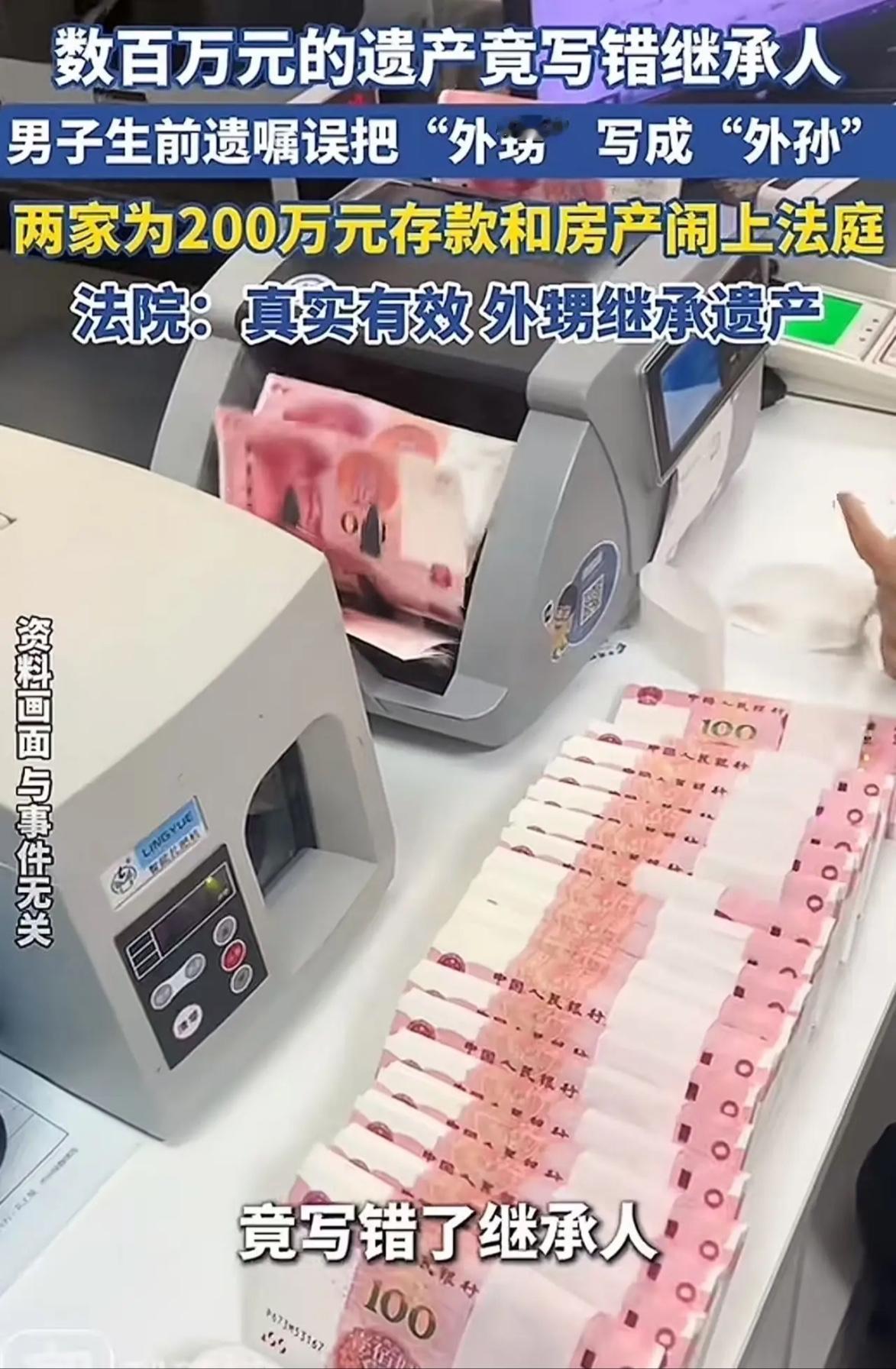 上海六旬男子去世前寫錯遺囑,把“外甥”寫成“外孫”,甚至還寫錯了繼承人的名字。外甥為數百萬元遺產起訴,法院判了! 上海六旬男子遗嘱笔误引风波,法院公正裁决护亲情 近日,上海奉贤区人民法院审理的一起遗产纠纷案件引发社会广泛关注。一位六旬男子去世前立下的遗嘱因笔误问题,让亲属间掀起了一场数百万元遗产的争夺风波,而法院最终的公正裁决,为这起纠纷画上了句号。 故事的主人公是张先生,他一生未婚未育,父母也早早离世,身边最亲近的便是两个姐姐。张先生去世后,按照公证程序,其名下位于奉贤区的房产、200多万元银行存款、十多支股票及十余万元账户余额,本应由两位姐姐共同继承。然而,张先生大姐的儿子李炯在整理遗物时,意外发现了一份张先生手写的遗嘱。遗嘱中明确写着,上述财产由“大外孙李烔”继承。可问题在于,李炯是张先生的外甥,并非外孙,且名字中的“炯”也被误写成了“烔”。 面对这份存在明显笔误的遗嘱,李炯认为这显然是指自己,毕竟舅舅生前与他关系亲密,常受其照顾。于是,他通过母亲将遗嘱内容告知二姨,希望能按遗嘱继承遗产。但二姨却坚决不认可这份遗嘱的效力,双方协商无果后,李炯无奈之下将二姨诉至法院。 庭审中,二姨提出多项质疑,称遗嘱存放随意,未与重要文件一同保管,不能反映张先生真实意愿;遗嘱中继承人姓名、亲属关系均有错误,落款日期书写也不符合法定要求,应属无效。而法院在深入调查后发现,张先生生前与二姐关系疏远,曾有过诉讼纠纷,平日少有往来。同时,结合张先生受教育程度不高、沪语中“外孙”与“外甥”发音相近,以及其亲属关系中并无姓名与“烔”字相近的人员等情况,法院认定遗嘱中的“大外孙李烔”就是李炯。而且,遗嘱落款时间与房产登记时间相互印证,进一步证明了这是张先生的真实意思表示。 最终,法院判决这份自书遗嘱虽有笔误,但并未影响被继承人真实意愿的表达,符合法定要件,合法有效,张先生的全部遗产由李炯继承。这起案件提醒我们,立遗嘱时务必严谨规范,明确亲属关系、核对姓名信息,避免因笔误引发不必要的争端。而法院在审理此类案件时,注重探究遗嘱人的真实意图,不机械拘泥于文字细节,也让法律有了温度,守护了亲情。上海六旬男子生前遗嘱写错 把外甥写外孙