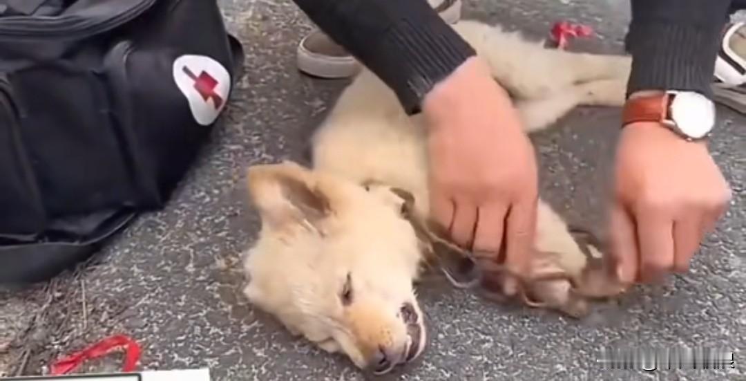 一只小狗被主人绑在高速公路的隔离带上,默默等待死亡降临。它的四肢被捆住,连嘴巴也被束缚起来。好在有好心人叫来了宠物医院的人。经过一番检查和抢救,小狗被带回了宠物医院。被抛弃狗狗 不爱请不要伤害