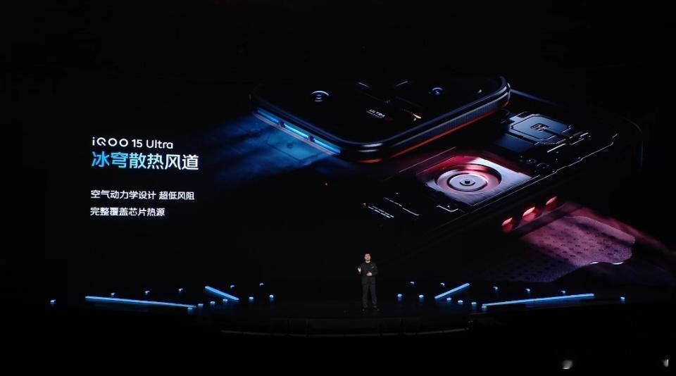 iQOO15 Ultra搭载冰穹风冷散热系统,隐藏式进风口,主被动一体散热。安兔