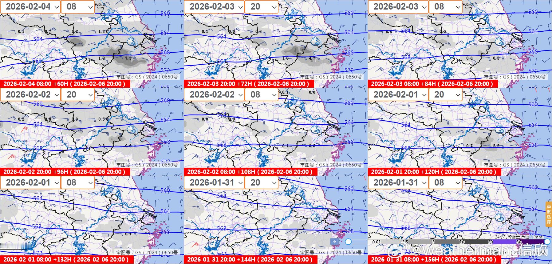 【降雪展望】目前数值预报对于2月6日江浙沪皖一带的降雪,依然有分歧。还是欧洲(ECMWF)报得最强,我国(CMA)和美国(NCEP)模式报得相对弱。但美国数值也有所增强。安徽西部的大别山区和南部山区以及浙江西北部的山区下雪没悬念,而且强度可能较大。平原地区的降雪,可能有,但强度待定。