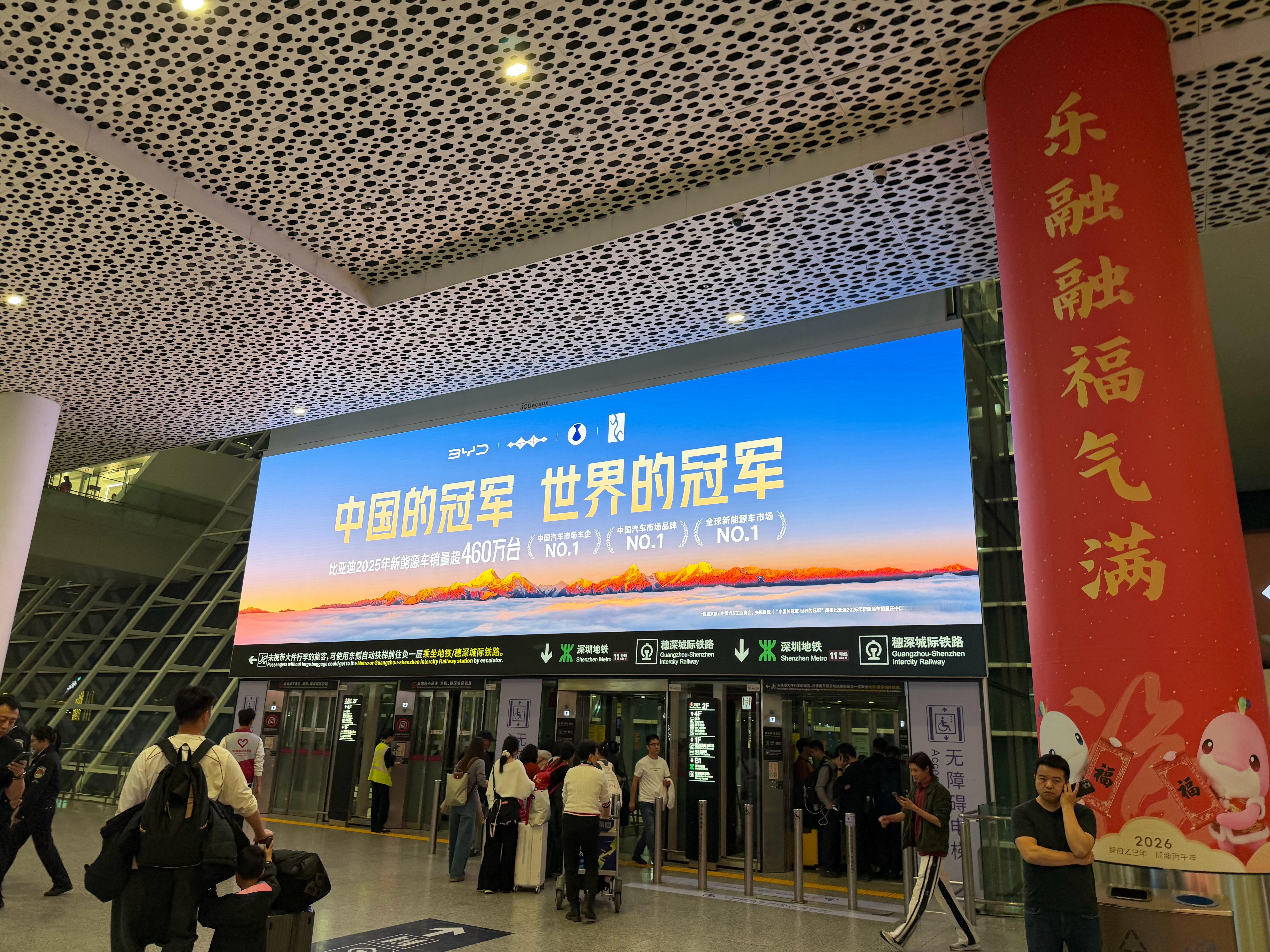 迪厂在机场打了几个位置广告?粗略数了一下,有屏幕就有广告。比亚迪 深圳·深圳宝安