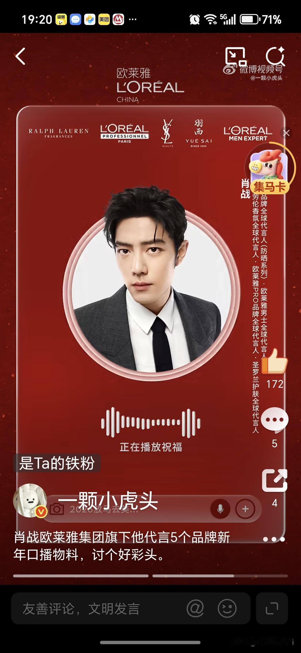 肖战原来代言了欧莱雅集团5个品牌,简直快把肖战承包了,而且全部是全球代言人。甚至肖战发新年祝福,都可以一次五个代言一起打包发[星星眼]