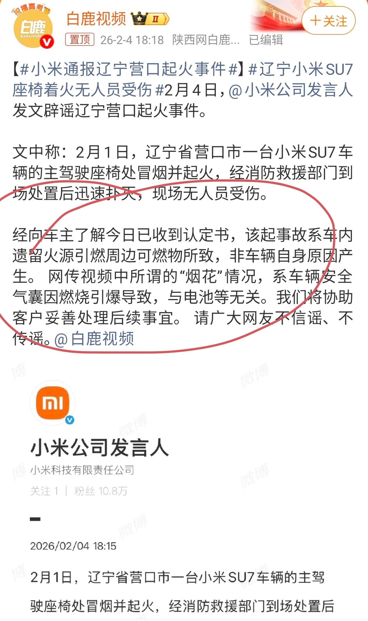 小米通报辽宁营口起火事件首先申明,不是黑子!就图1的这个说法提一个小小的疑问:之