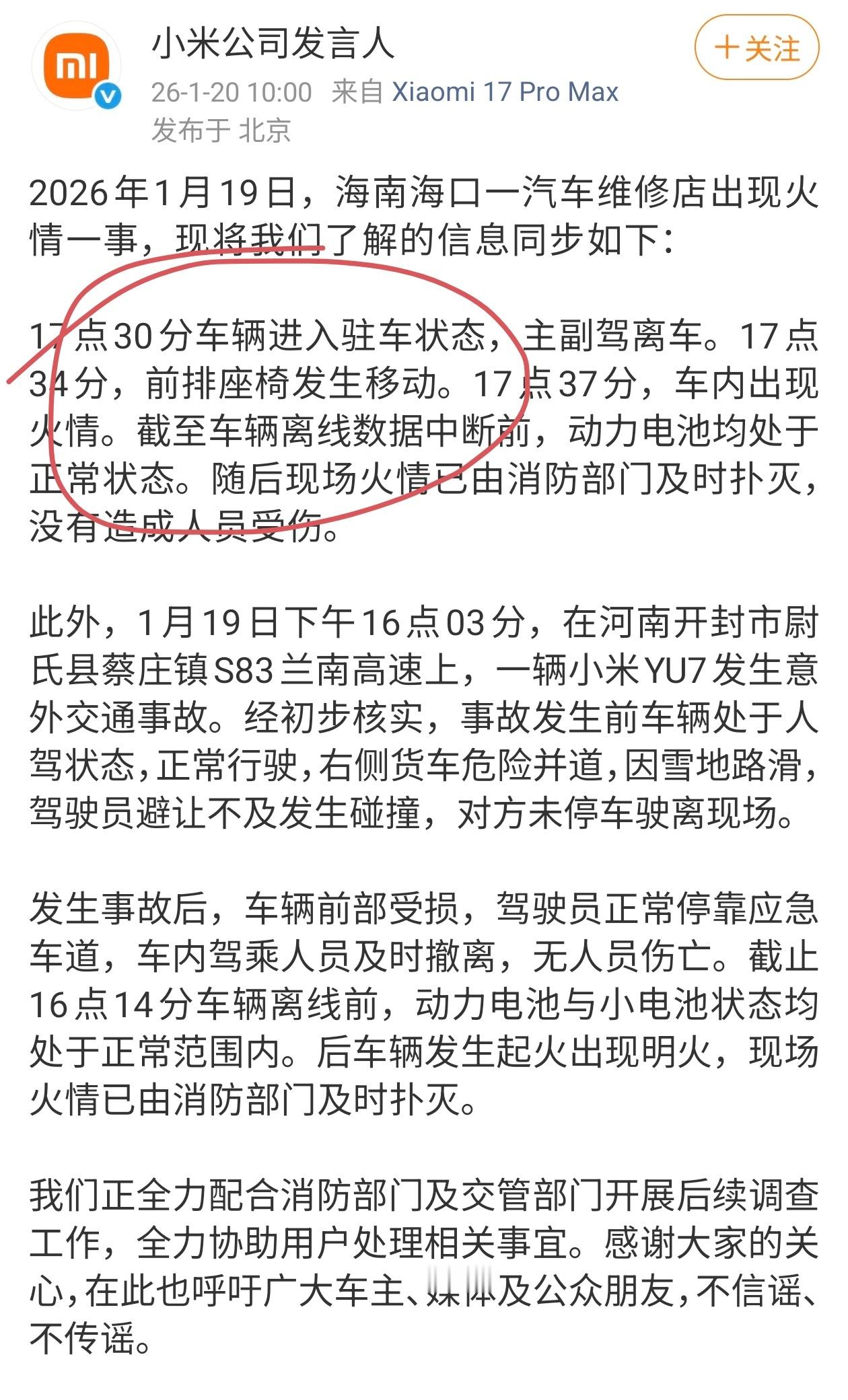 之前海南那个事故,印象里通报里说是车主停车驻车后,离开车子,后来车内座椅前后移动,然后就是在汽车装修店出现火情。