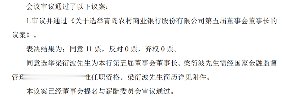 选举梁衍波为新董事长,标志着青农商行高管层开启“新老交替”。