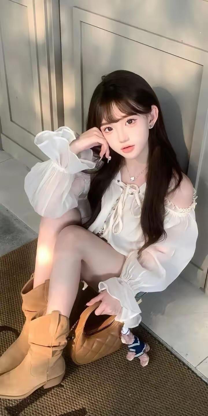 温柔甜美的咖啡馆穿搭,白色衬衫与棕色靴子完美搭配,少女心满满!💕👗👢去海边
