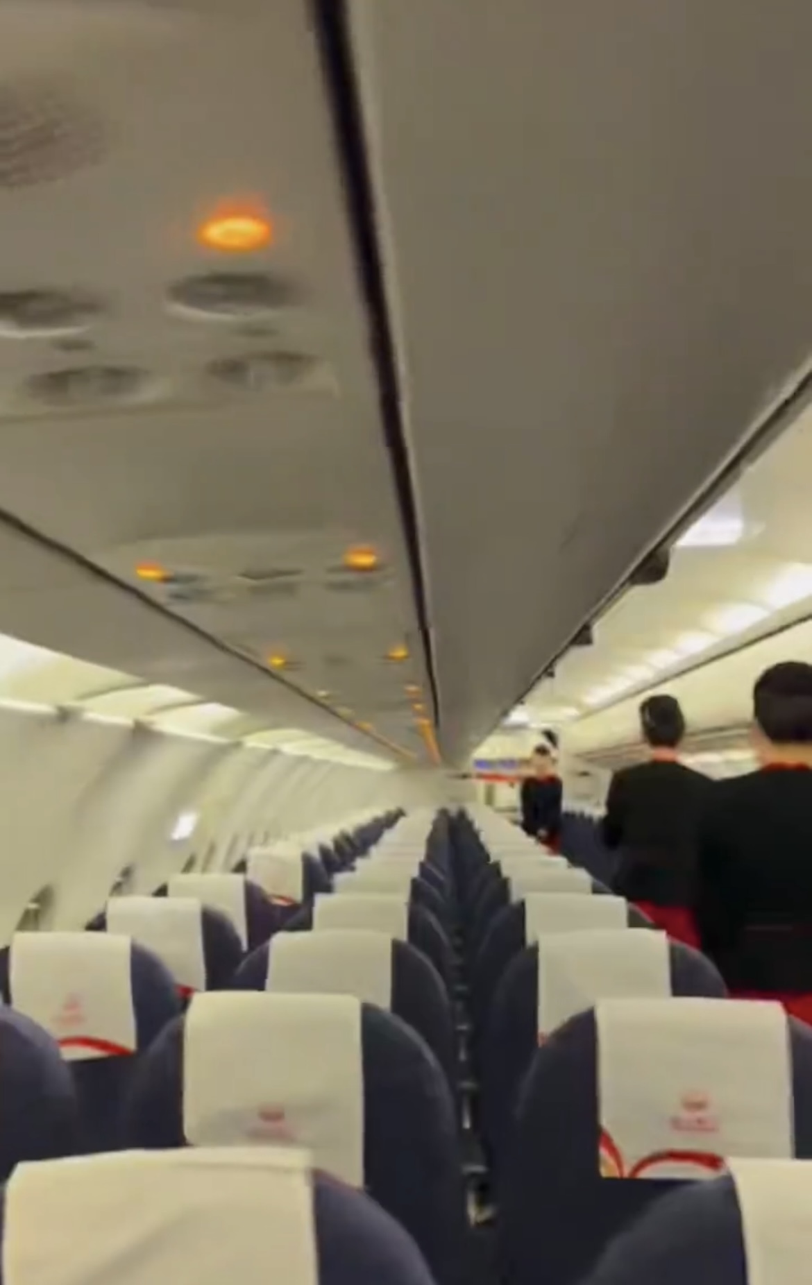 没有乘客,空姐照常服务(视频截图)