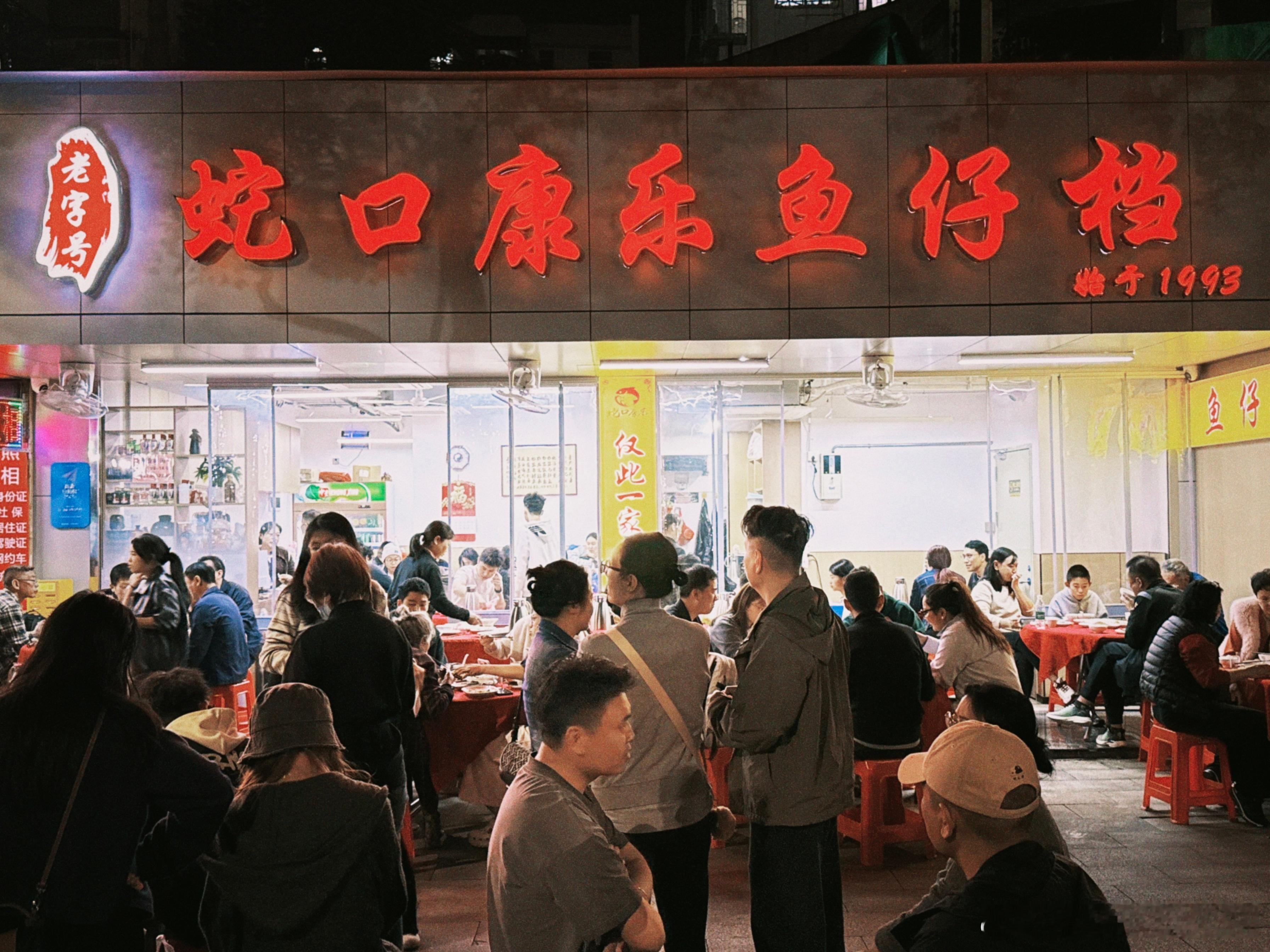 今天在附近办事 路过见没啥人排队 赶紧停车坐下还好来得早 你们看现在人流 深圳·蛇口康乐快餐鱼仔档(翠苑小区店)