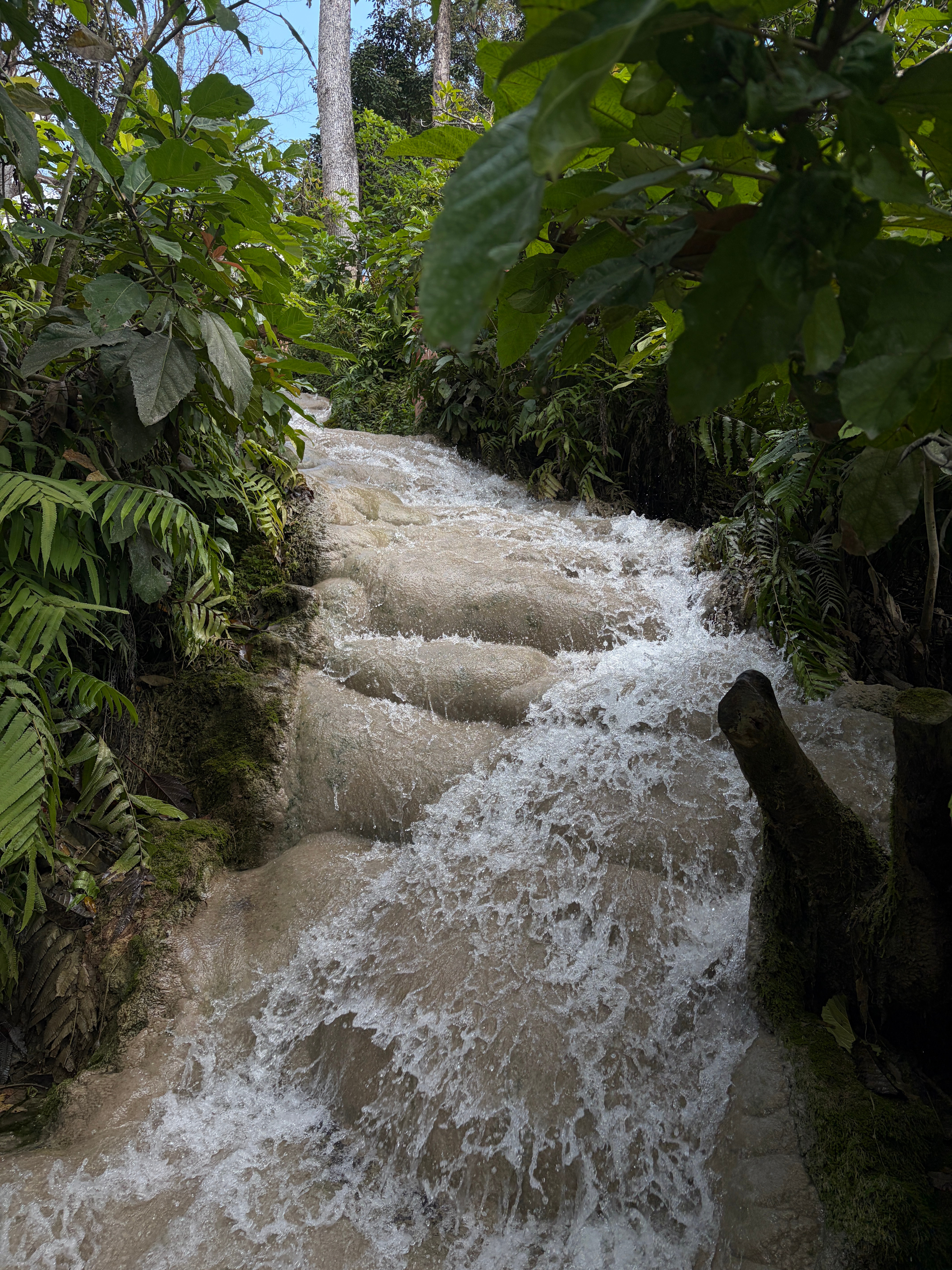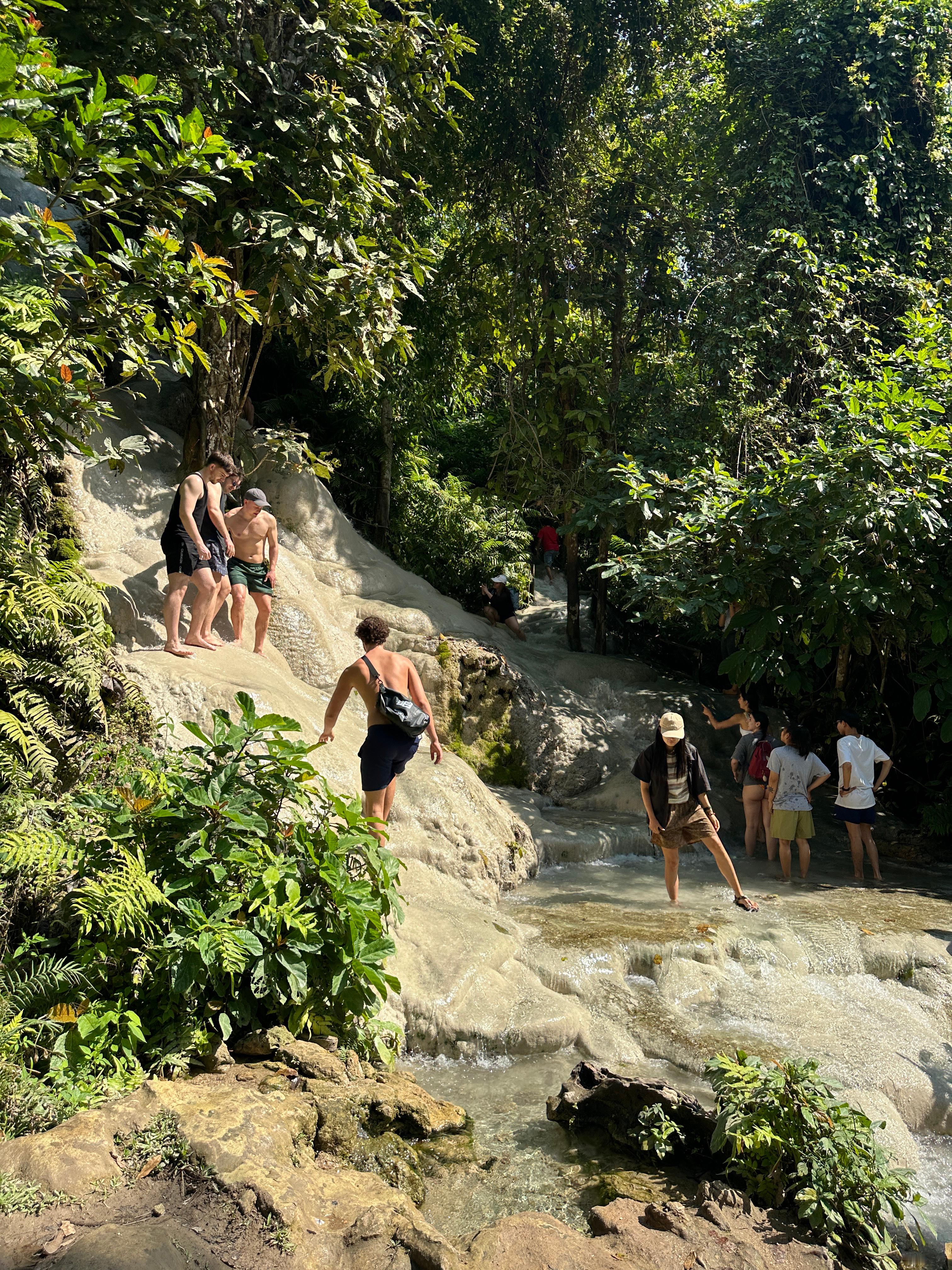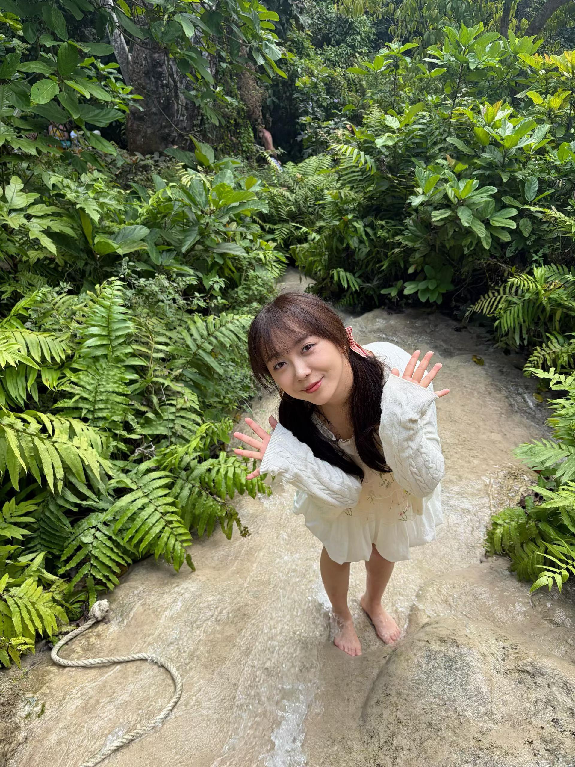 清晨推开窗,山雾像纱幔般漫进房间。沿着石阶往深处走,三叠瀑布突然撞入眼帘——第一
