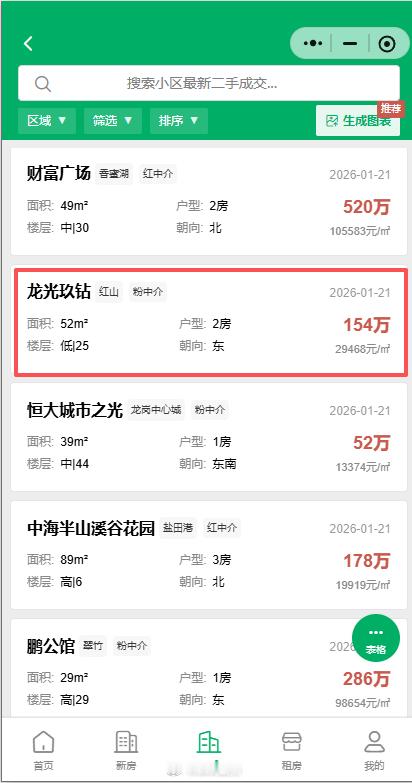 龙华红山的龙光玖钻52平,154万成交,单价2.9万。都是loft复式,这个出租