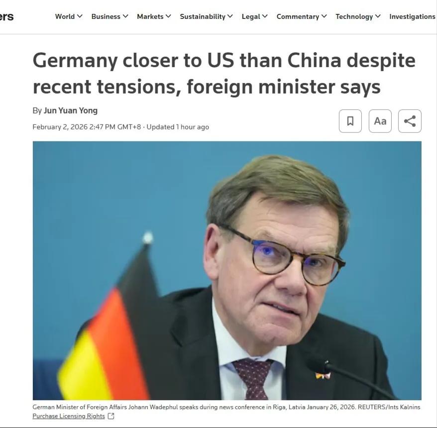 德国外长选边站美国! 德国外长瓦德富尔2月2日,在访问新加坡时期间表示,不应因与美国的分岐而在战略上转向北京,尽管存在紧张关系,德国仍坚定站在美国一边,德国与美国、中国的关系并非“等距”,华盛顿仍是欧洲、德国最重要的伙伴。 瓦德富尔称德国与美国、中国的关系并非“等距”这也是事实,近年来不光德国连欧洲一直扮演着美国的“跟班”的角色,这也许跪久了脊梁骨已经直不起来了。尽管特朗普政府对欧洲一直缺乏尊重,但欧洲都无力应对,这就是因为对美国的过渡依赖,使欧洲多年来一直叫嚣着要战略自主都没有能实现。 然而,德国政客们有时鼓噪亲美对中国“去风险化”,不过,德国企业的身体却很诚实选择继续加大投资中国。德国工商总会最近做了个调查,78%的企业说中国市场不可替代,36家德企联合给政府提交建议书,白纸黑字写着“德国要维持经济地位必须加大对华投入而非减少”。 其实,俄乌冲突后对,由于欧洲国家对俄罗斯的严厉制裁,已经令德国失去了廉价的俄罗斯能源,使德国家庭天然气价格飙升74%,工业电价涨40%,中小企业成片倒闭。可见,这些企业面临的严重生存问题,还真不是依靠德国有些政客整天去鼓吹意识形态偏见,搞阵营对抗能够帮助解决的。