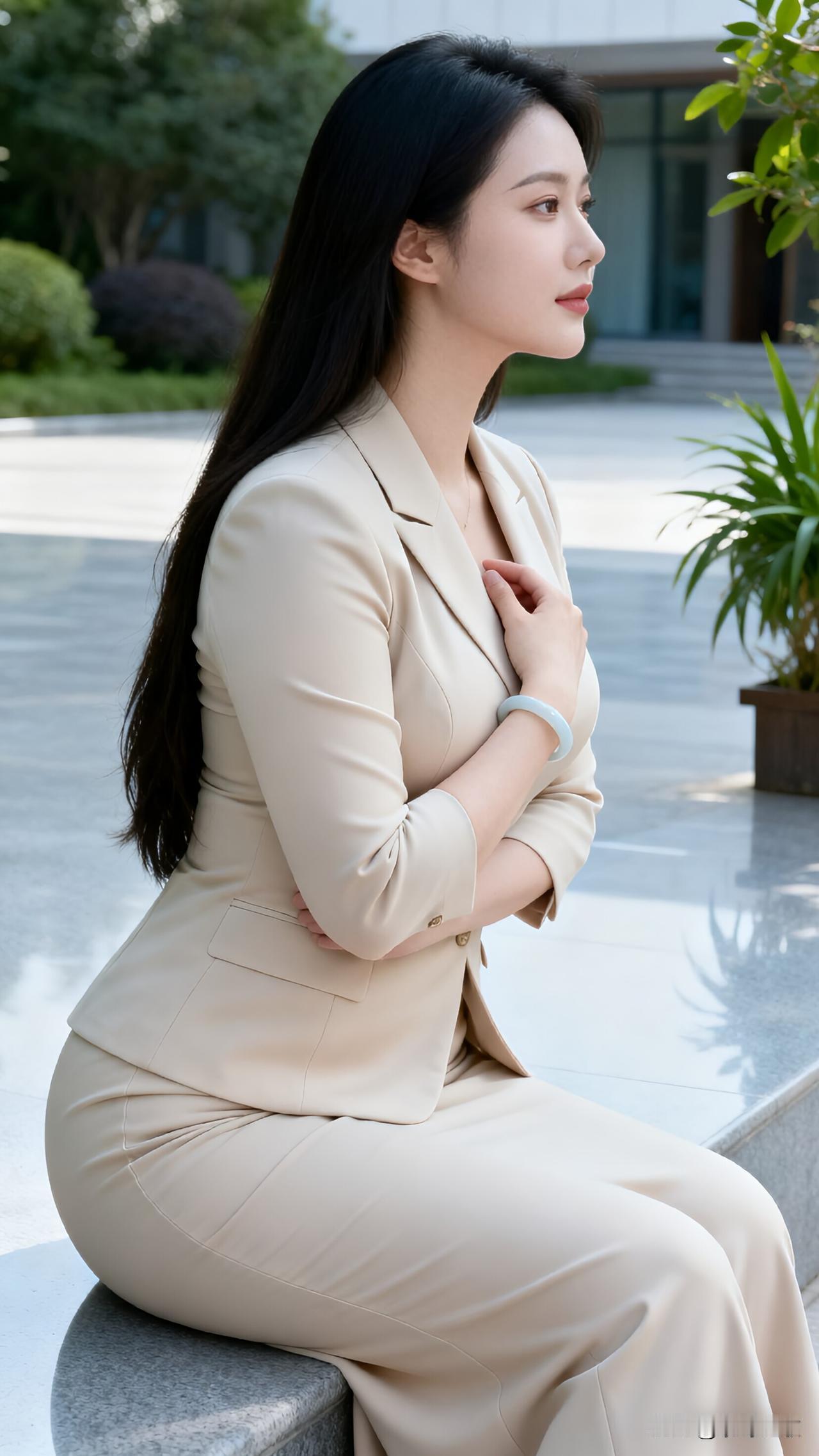 谁说职场风不能又美又飒? 天哪!这身米色职业套装也太绝了吧!这才是职场女性该有的样子:既有“生人勿近”的高级气场,又有“人间绝色”的温柔魅力!米色修身西装完美勾勒出窈窕曲线,搭配同色系一步裙,简约中透着精致,手腕上的翡翠手镯更添几分东方韵味,简直是“温柔与干练”的完美平衡! 她或侧身而坐,长发轻垂,目光坚定望向远方,仿佛在思考人生;或回眸一笑,眼神清澈,瞬间击中人心。阳光洒在身上,将职场女性的自信与优雅展现得淋漓尽致,这不就是我们心中“搞事业又爱生活”的理想模样吗? 这样的“职场白月光”,你是心动于她的气场,还是羡慕她的穿搭?评论区聊聊,你觉得职场穿搭最重要的是什么?快来分享你的看法! 职场穿搭 气质女神 御姐风 职业装美女