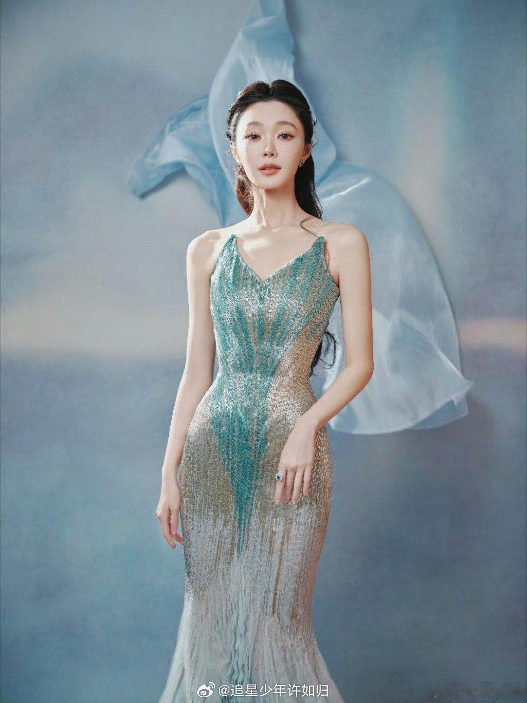 宋轶裙摆叠了几万层 这条裙子的设计像一场深海解构实验:把海浪拆解成数万层薄纱,把夕阳光谱揉进鎏金闪片,把海水透光率转化成蓝的渐变。而宋轶,是让这场实验得以成立的完美载体——她让服装科学,变成了视觉魔法。