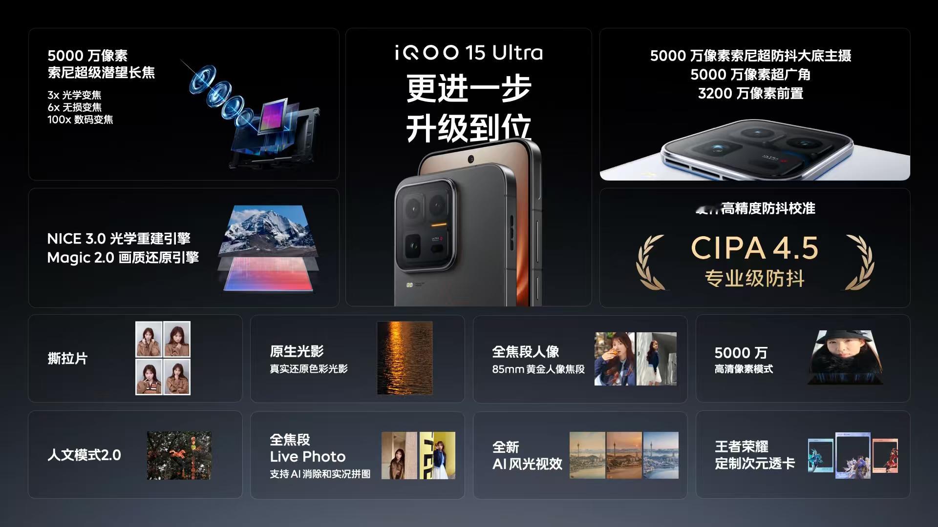 影像上,iQOO 15 Ultra采用5000万像素三主摄方案,包含索尼大底主摄与超级潜望长焦,搭载全新NICE 3.0影像算法。设计方面,新机提供2077(黑)与2049(银)两款未来科幻配色,引入「能量矩阵」纹理与TOF工艺中框,并保留Monster Halo呼吸灯作为性能身份标识。