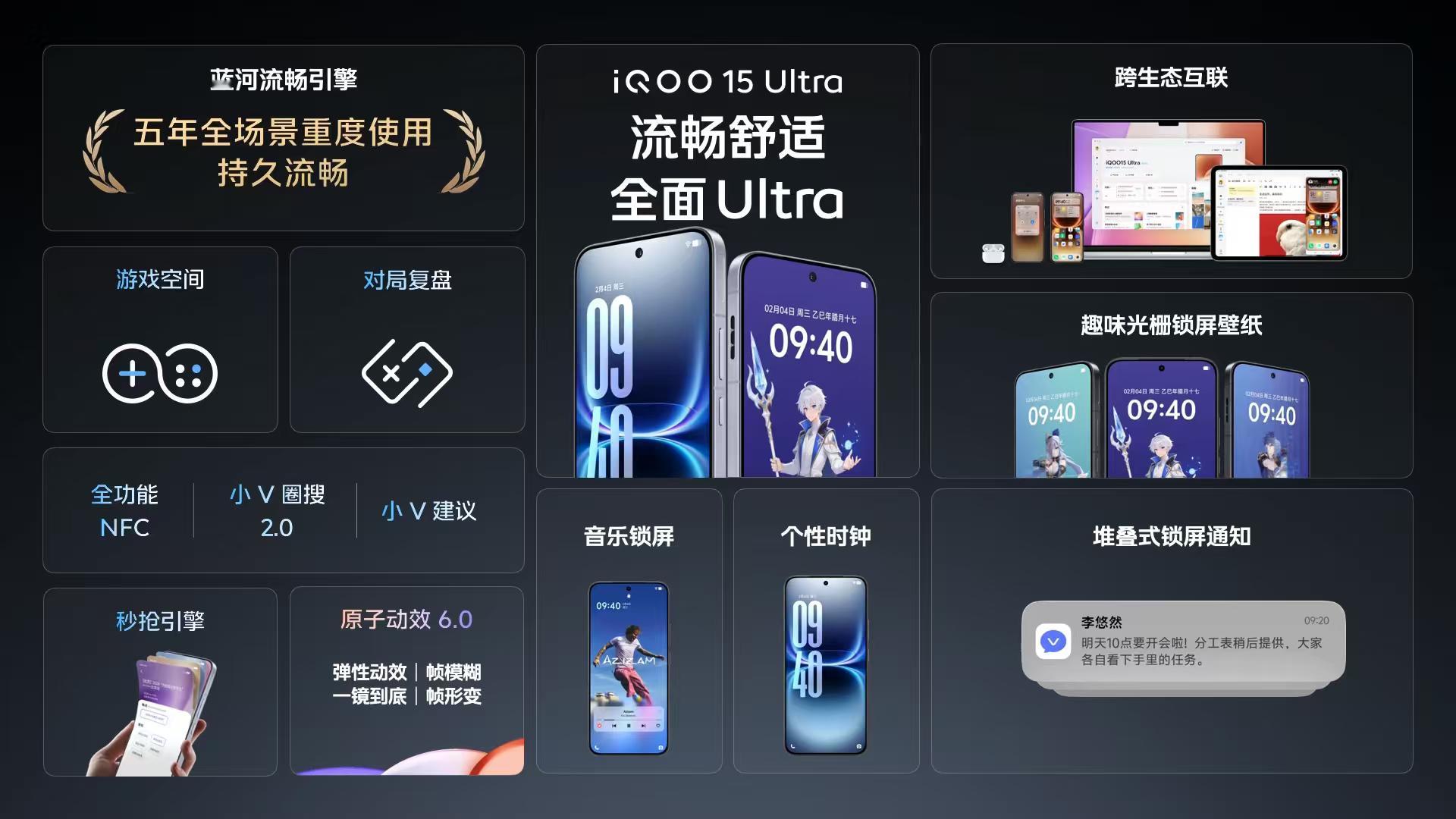 性能与散热。iQOO 15 Ultra搭载第五代骁龙8至尊版,配合自研Q3电竞芯片与Monster超核引擎,实现2K原画超分+全场景光追+120FPS超帧的顶格并发能力。
