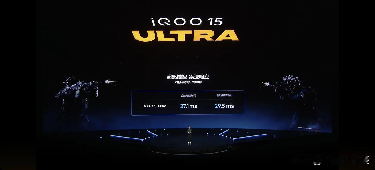iQOO15 Ultra搭载自研电竞芯片Q3,游戏视效再创新高。 三大视效:全场景光追+2K原画超分+120帧超帧顶格并发,《开放世界手游》光追超分超帧1小时,平均帧率119.2帧,温度仅44.7℃。 QNSS超级渲染引擎:用一半性能开销实现翻倍的游戏性能和画质表现。 三大光追算法:全局光照、高光反射、光追降噪再度升级,游戏场景更真实自然,已支持4款热门游戏全场景光追效果。 iQOO15 Ultra全新打造超感游戏操控,超感游戏肩键、超感陀螺仪、超感触控组成一整套系统级的多维操控体验,把操作上限拉到全新高度。 超感游戏肩键:600Hz超高采样率,热门游戏实测触发响应速度低至32毫秒。 超感陀螺仪:500Hz采样率,结合iQOO自研超感疾速算法,能实时捕捉你的手部细微动作。 超感触控:至高4000Hz瞬时触控采样率,480Hz多指触控采样率;与《三角洲行动》官方合作推出超感分区触控功能,针对技能按键区、轮盘区做出了专项触控优化,杜绝断触、响应更快;精准优化轮盘回追速度和轮盘准心回位率。