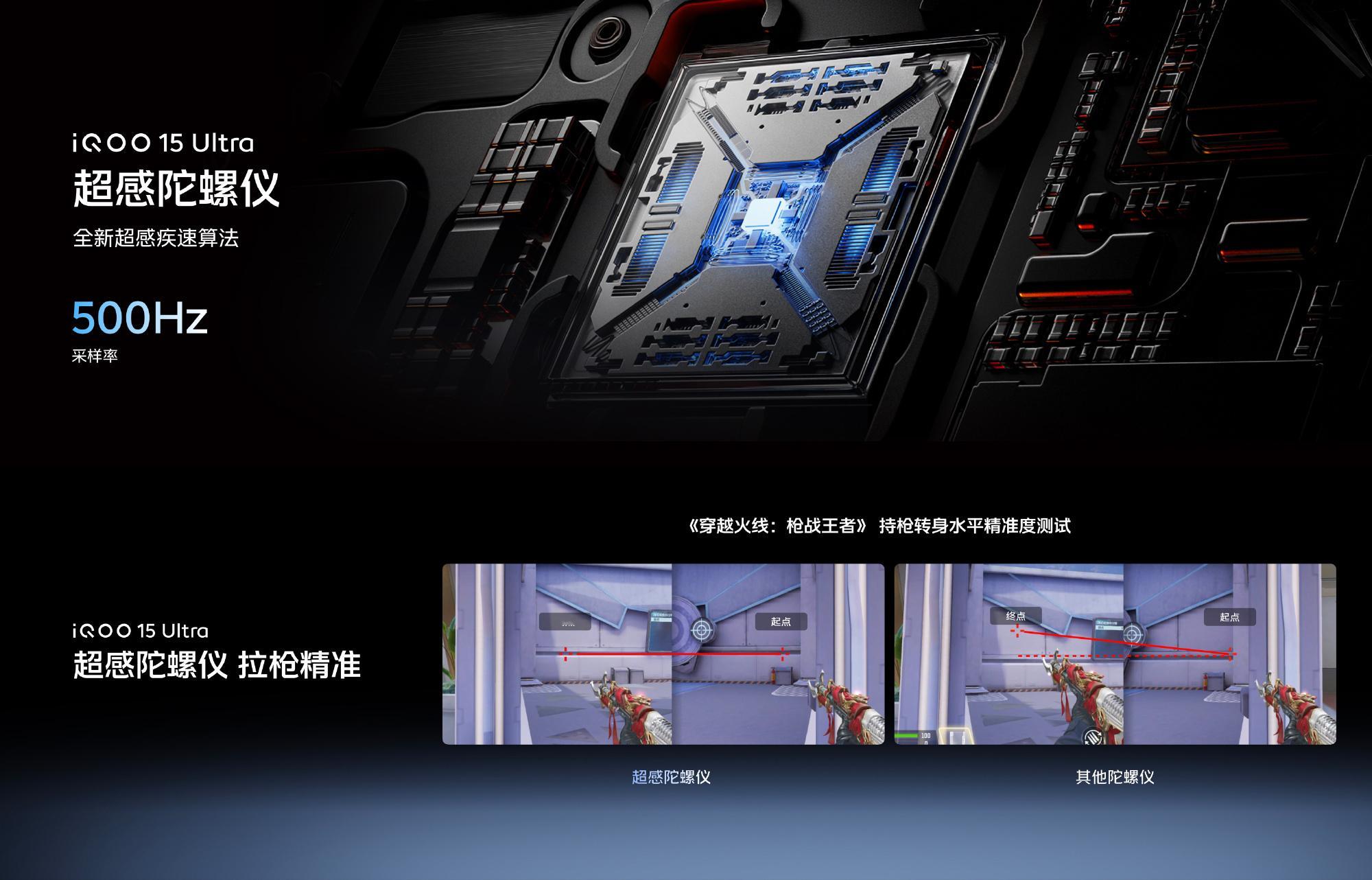 iQOO15 Ultra搭载自研电竞芯片Q3,三大视效:全场景光追+2K原画超分+120帧超帧顶格并发;QNSS超级渲染引擎:用一半性能开销实现翻倍的游戏性能和画质表现;三大光追算法:全局光照、高光反射、光追降噪再度升级。还有全新超感游戏肩键,超感陀螺仪、超感触控,游戏体验拉满。