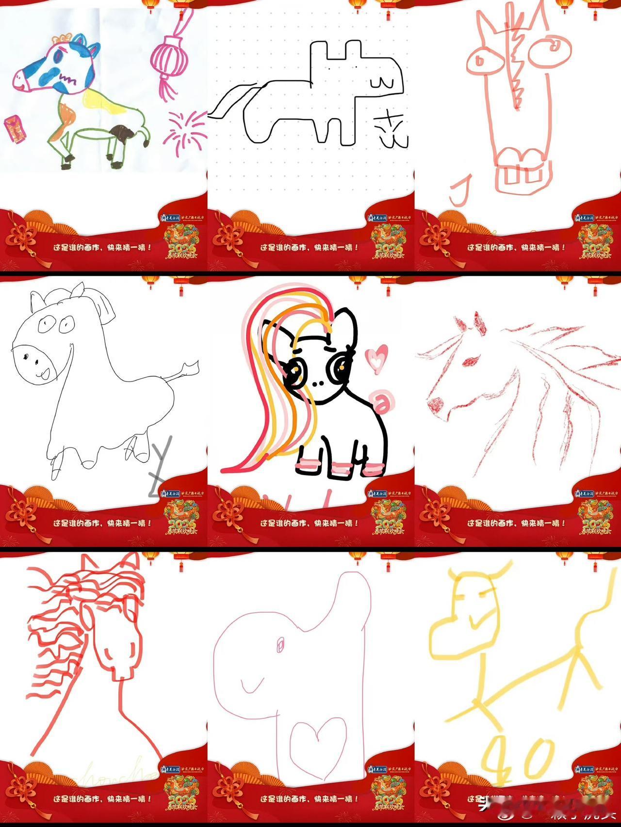 北京卫视发的参加春晚的明星画的马年图,大家猜猜哪一个是肖战画的,很多人都猜是最后