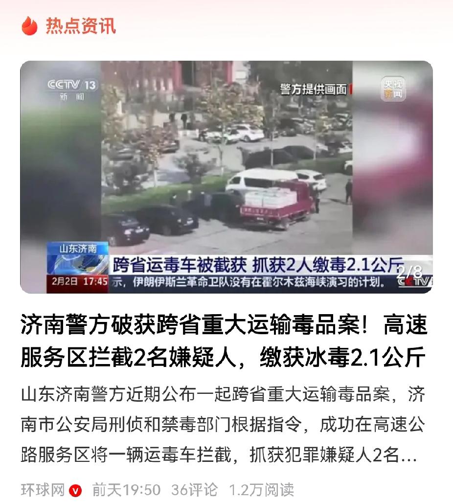为英勇的济南警方点赞,也因此可见现在反毒形势还很严峻。 最近,济南警方果断出击,在高速公路上拦截了一起跨省运毒案件,抓获犯罪嫌疑人两个,缴获冰毒2公斤。 好家伙,2公斤冰毒啊。一般人吸个1~2g冰毒就能上瘾,这2公斤冰毒,足以摧毁上千个家庭。 这次运毒是从长沙开始,计划运到辽宁的。犯罪嫌疑人之前在境外干电诈,后来认识了境外贩毒团伙,就干起贩毒来了。 我国法律规定,贩毒50g就得吃花生米。2公斤的毒品,足够两人枪毙40次了。 由此可见,两人是何等的亡命之徒。事实如此,在济南警方抓捕的时候,两个毒贩子直接冲卡拘捕。警察真是冒着生命危险在禁毒啊,向禁毒警察致敬。 同时也说明,现在禁毒形势也很严峻,不光有外部,还有内部的因素,比如吸毒信息被封存。
