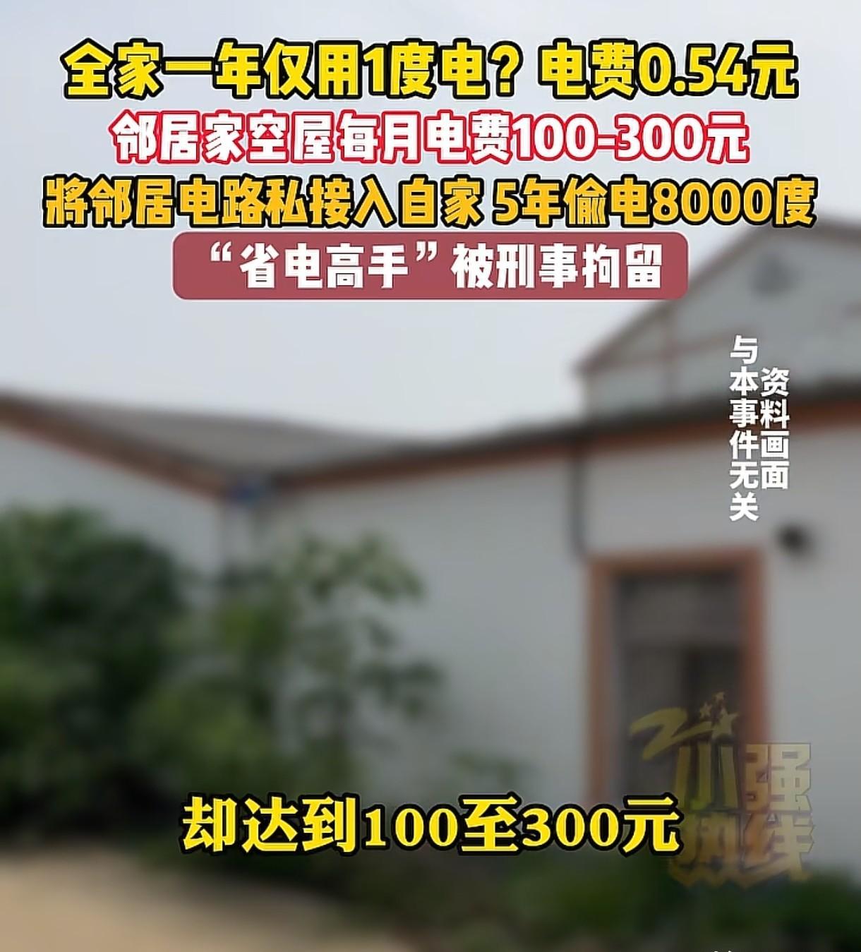 温州一老房空置却电费不减, 邻居用电少得离谱, 电表背后藏了啥? 何女士家五年没住人,电费单却每月200块。隔壁陈某家全年只交了1度电的钱,0.54元。 供电局查数据时觉得不对劲,顺藤摸瓜发现两户墙里被凿了个碗口大的洞,电线直接缠在一起偷电。 这偷了五年,总共8000度电,算下来4000多块钱。 法律上早够立案了——刑法写得明明白白,1000块以上就可能坐牢,何况还连偷五年。 供电局能罚,法院能判,房东还能告他赔钱和修线路隐患。 其实不是手段多高明,就是谁也没想到会有人用最土的办法:砸墙、剥线、手缠线头。 智能电表没报警,因为没动表本身;巡检员没进门,因为房子看着没人住。 问题不在技术多先进,而在人没真盯住。 查出来靠的不是高科技,是抄表员多看了一眼异常数据。 电费单子现在就是证据,不是摆设。 省电没错,但偷电就是偷钱。 电表不会说谎,账单自己会说谎。