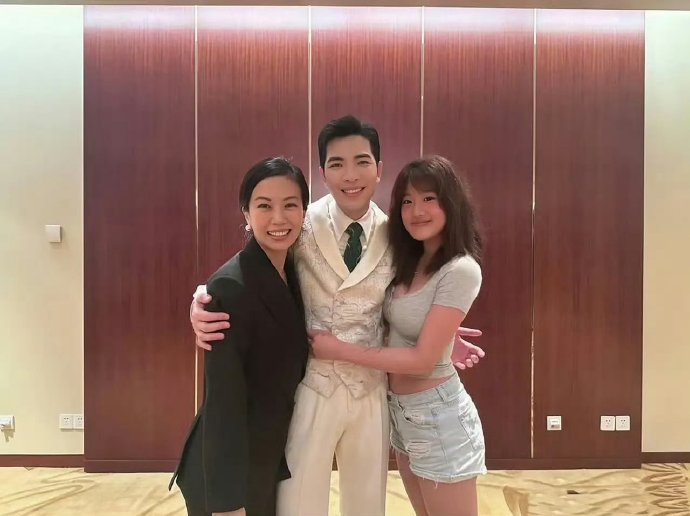 贾静雯大女儿与萧敬腾夫妻合照,像极了一家三口 ,只是萧敬腾紧张的手都不知道放哪了