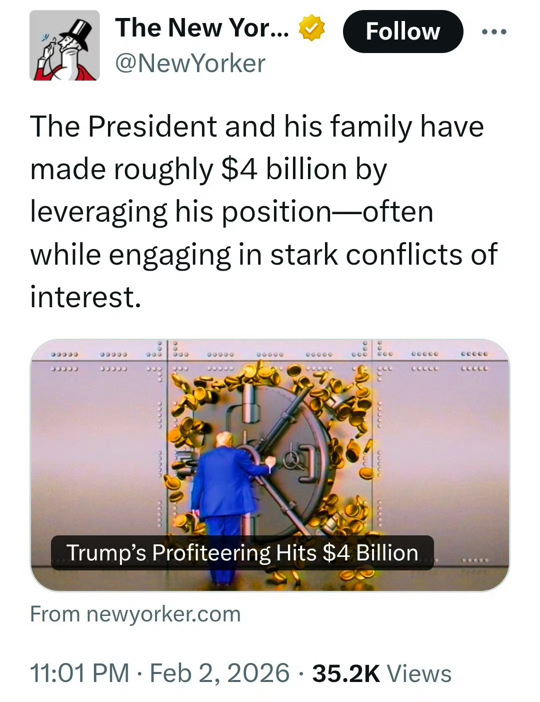 美网上铺天盖地都是特朗普家族赚取巨大利益的新闻!