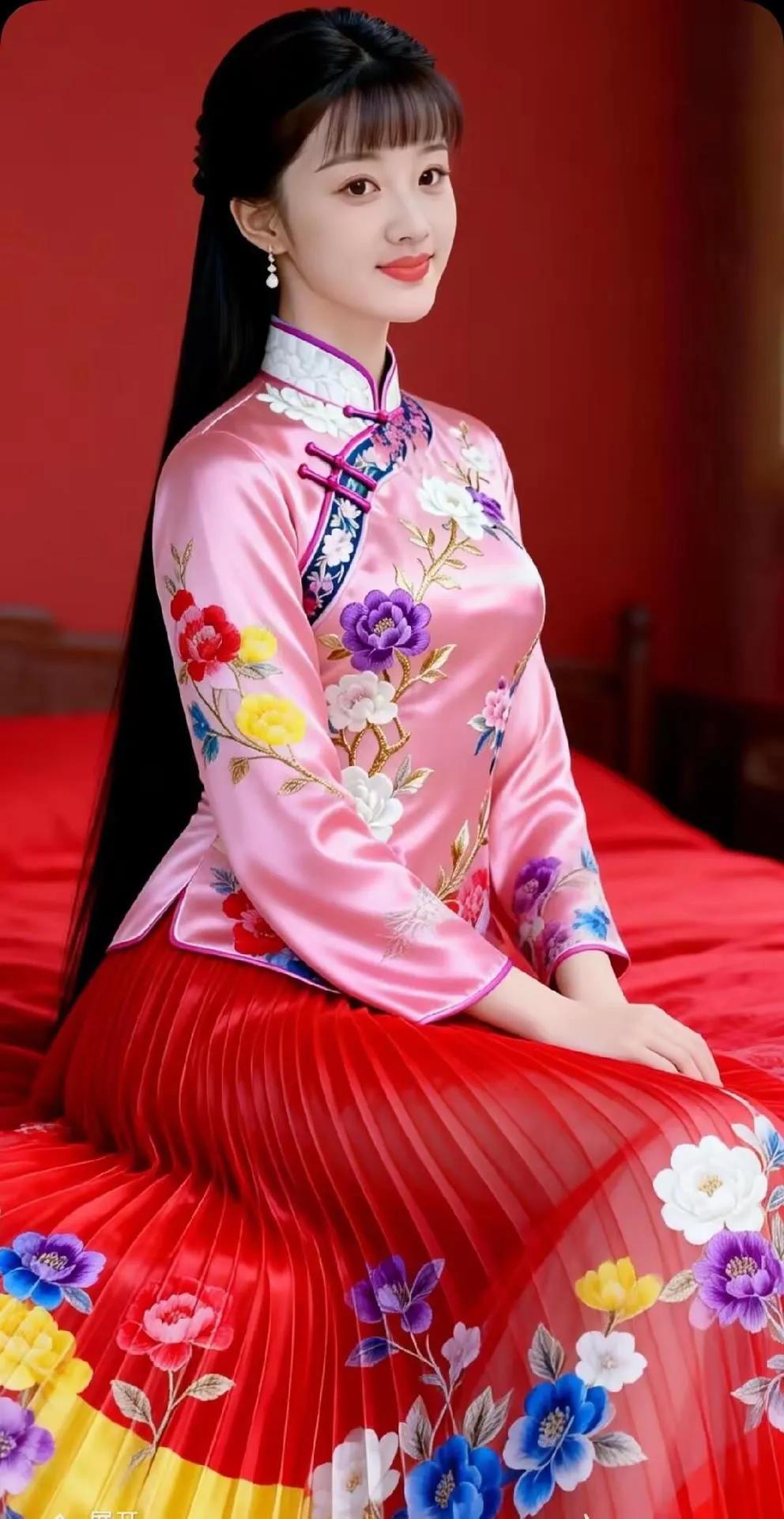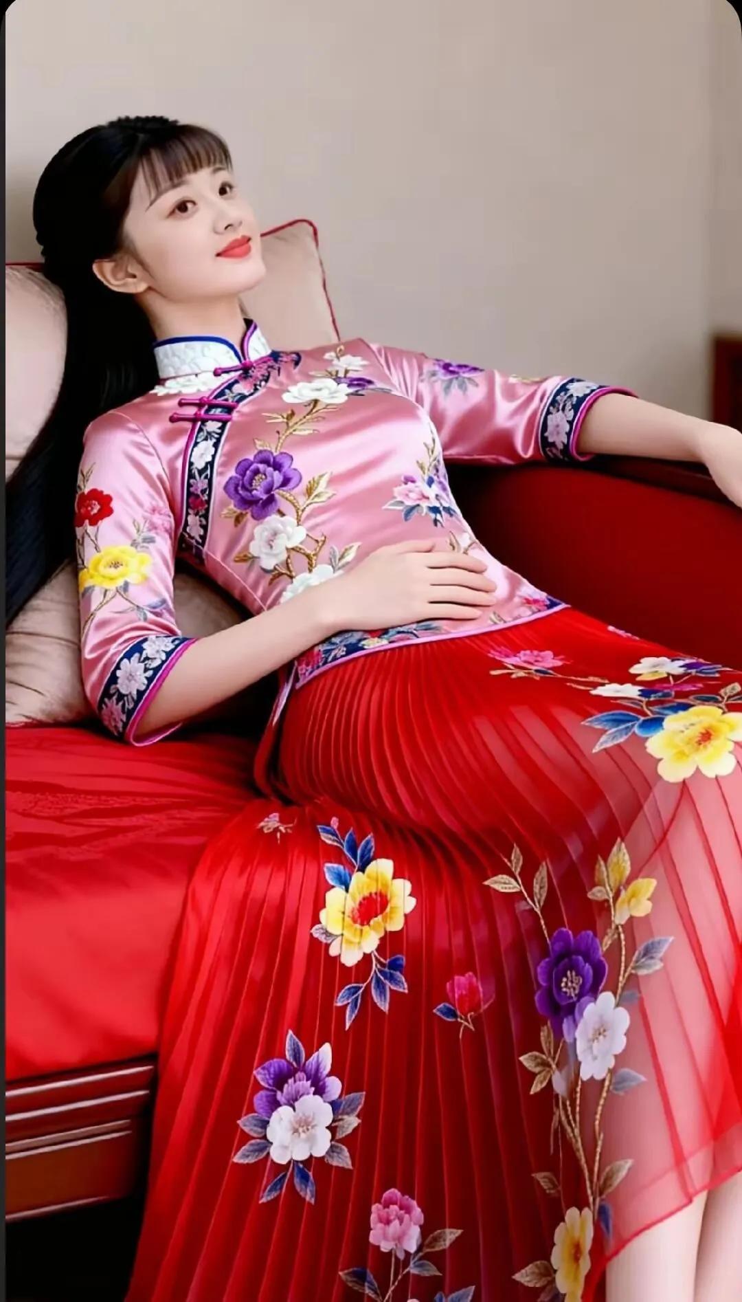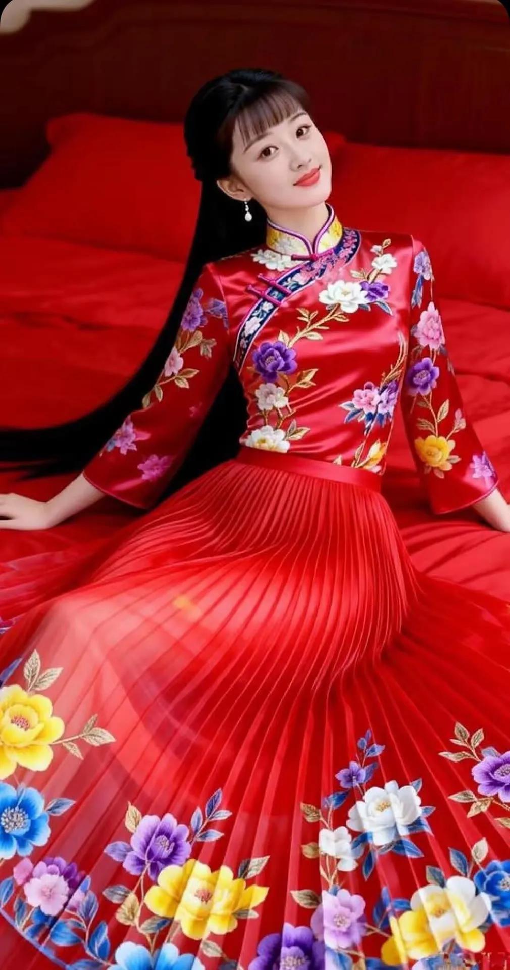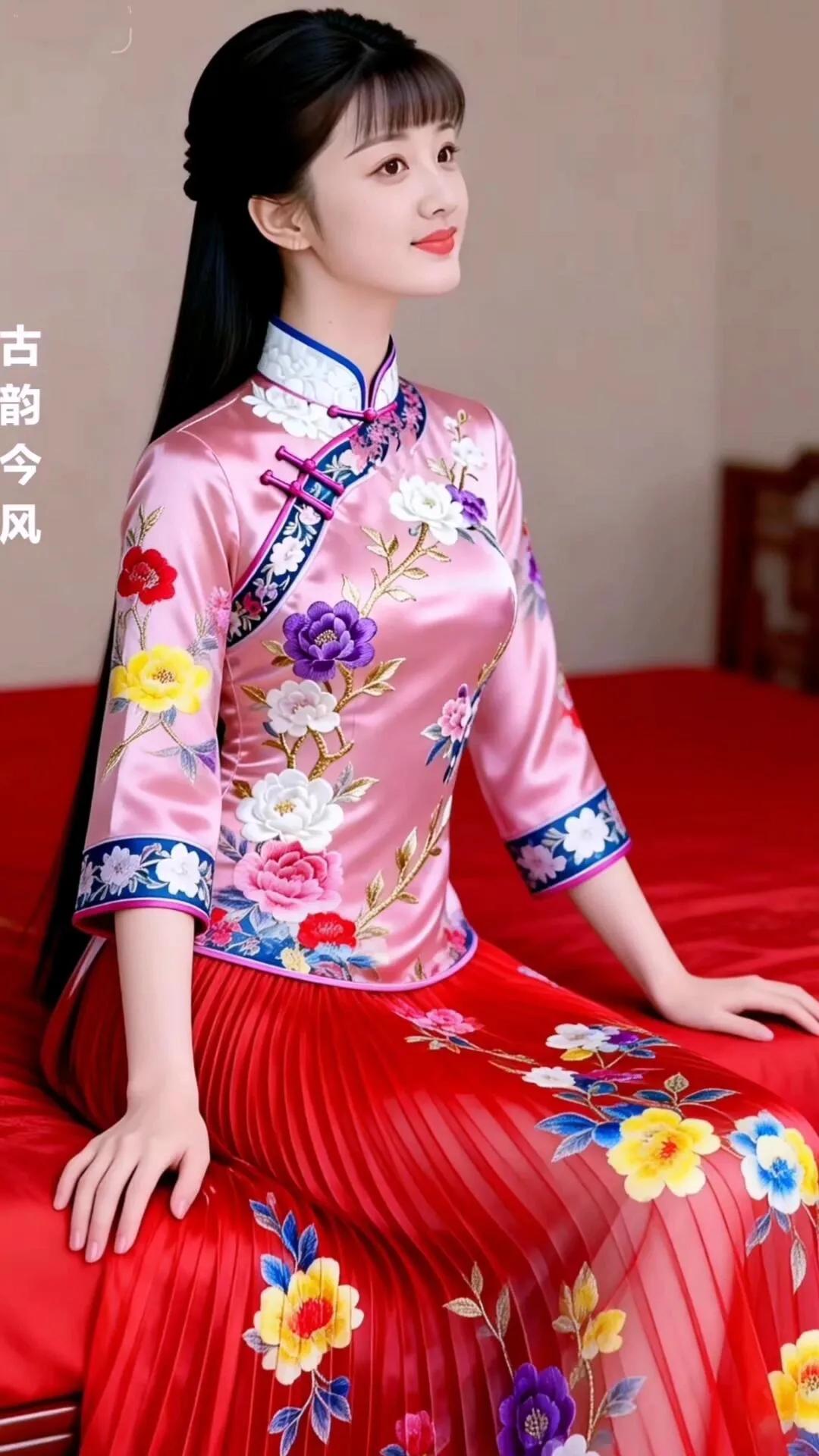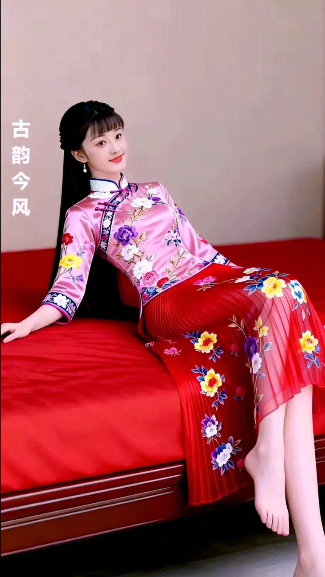 古韵今风,红衣美人,花团锦簇,韵味十足。
