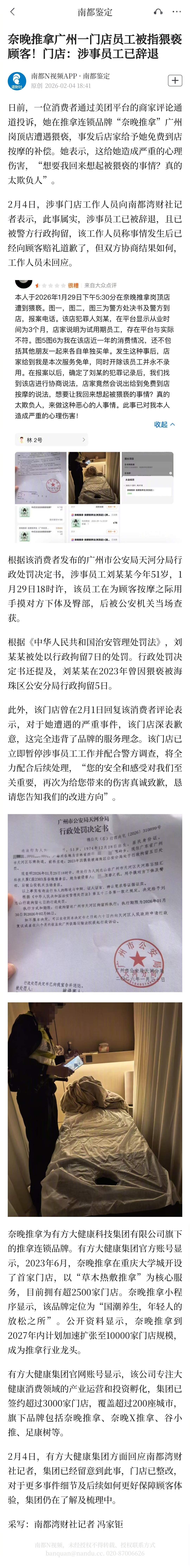 #推拿店员工猥亵女顾客被拘7日#【奈晚推拿广州一门店员工被指猥亵顾客!门店:涉事员工已辞退】#奈晚推拿店回应员工猥亵女顾客##51岁推拿技师涉嫌猥亵已被行拘#日前,一位消费者通过美团平台的商家评论通道投诉,她在推拿连锁品牌“奈晚推拿”广州岗顶店遭遇猥亵,事发后店家给予她免费到店按摩的补偿。她表示,这给她造成严重的心理伤害,“想要我回来想起被猥亵的事情?真的太欺负人”。