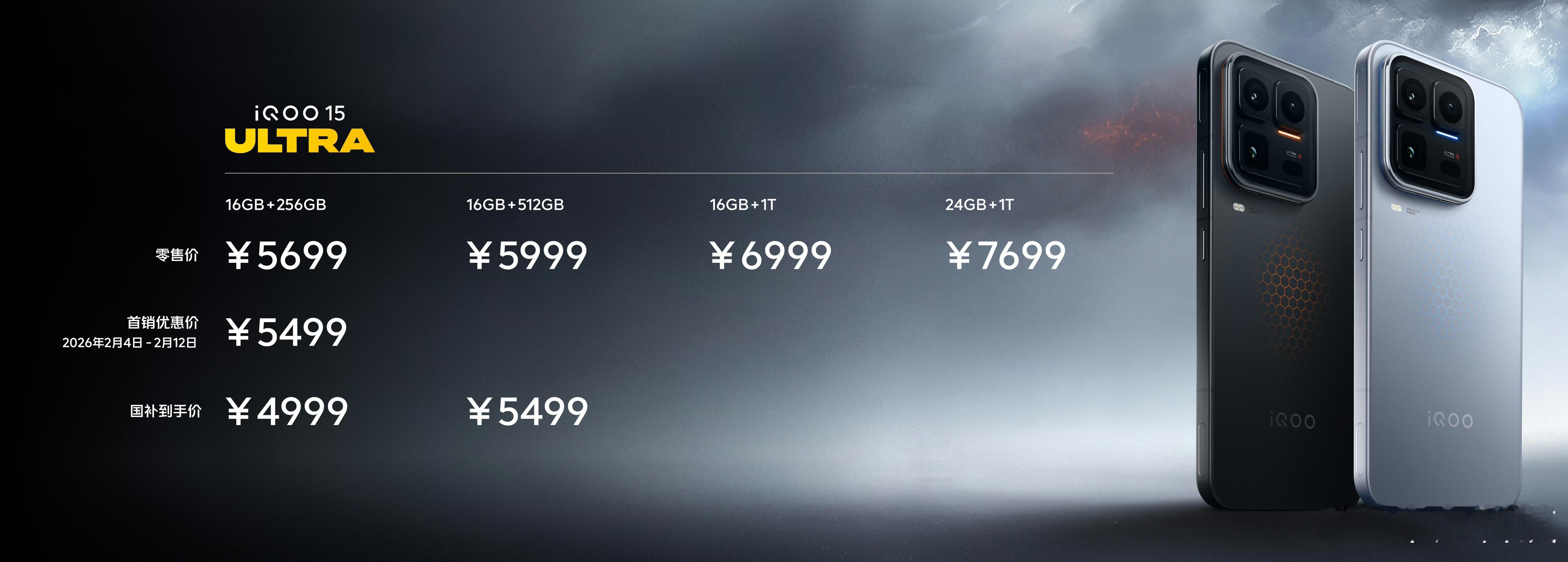 iQOO15 Ultra价格出来啦,首销优惠价5499元起,国补到手价4999元起。怎么样,香不香?!😉