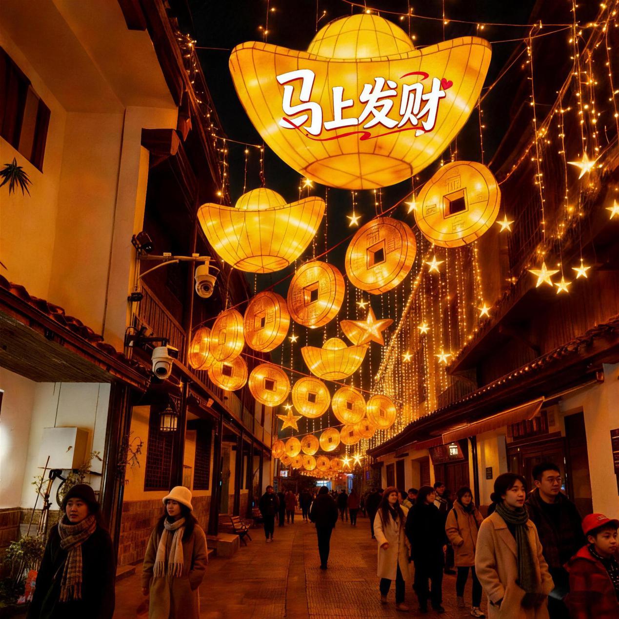 漫步靖港古镇青石板路,糖画、剪纸、湘绣等湖湘年俗元素用灯组串联,随处可见马年美好祈愿——马上有福、马到功成……营造独具湖湘韵味的新春盛景。这个春节,靖港古镇将推出“福马吉市”年货大集、新春鱼灯巡游盛典、日夜连台好戏不散场、老长沙游戏&NPC互动、非遗工坊展示体验、八骏图集章有礼、“神马总动员”寻宝挑战、元宵灯谜喜乐会等年味玩法,生动展现千年古镇的古韵今辉。