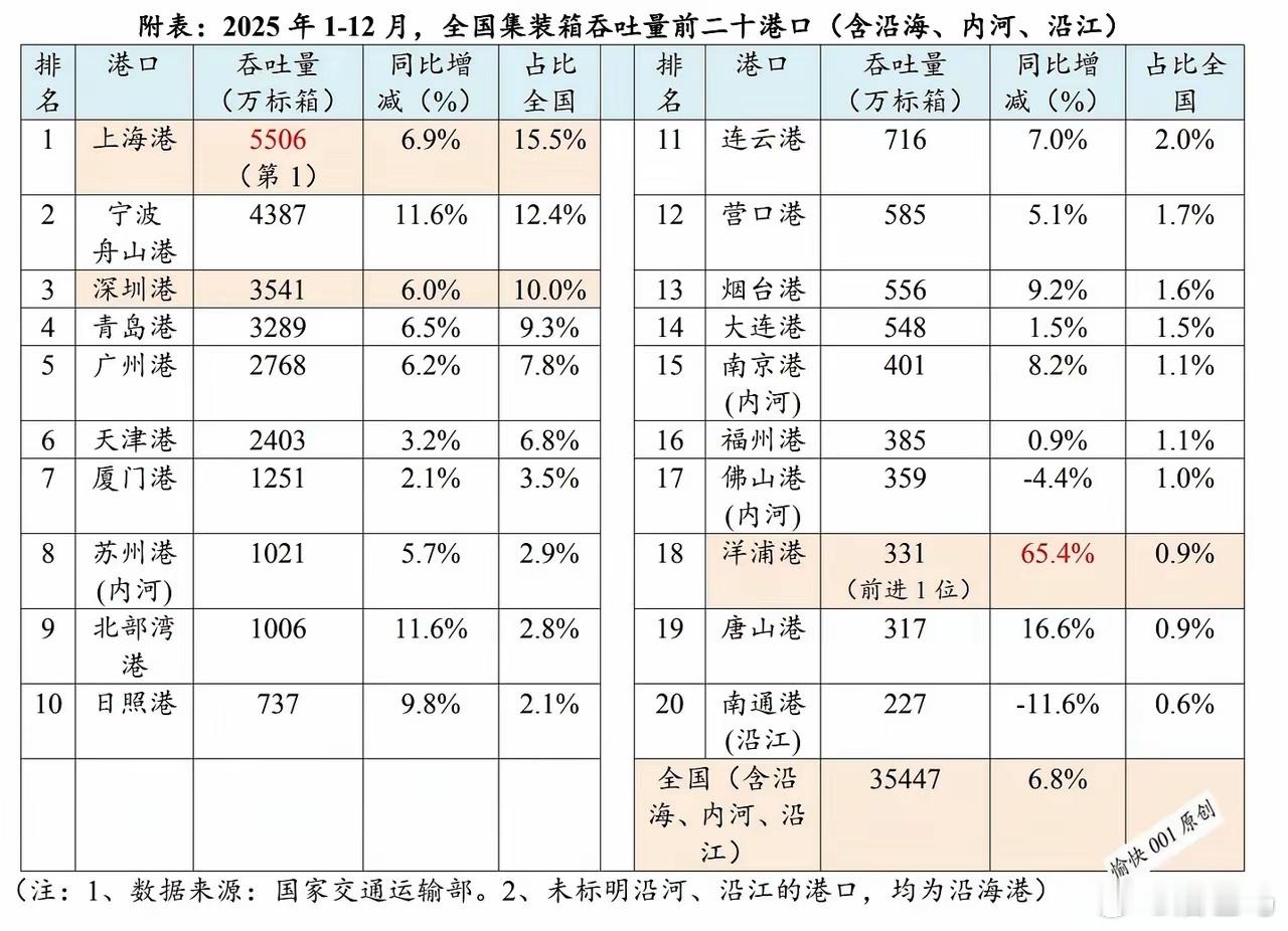 交通运输部发布2025年1-12月全国港口货物,集装箱吞吐量数据。各主要港口集装箱吞吐量均实现同比增长,涨幅不一,前十大港口增长最快的为北部湾港和宁波与舟山,达11.6%,厦门港增加2.1%,增幅缓慢