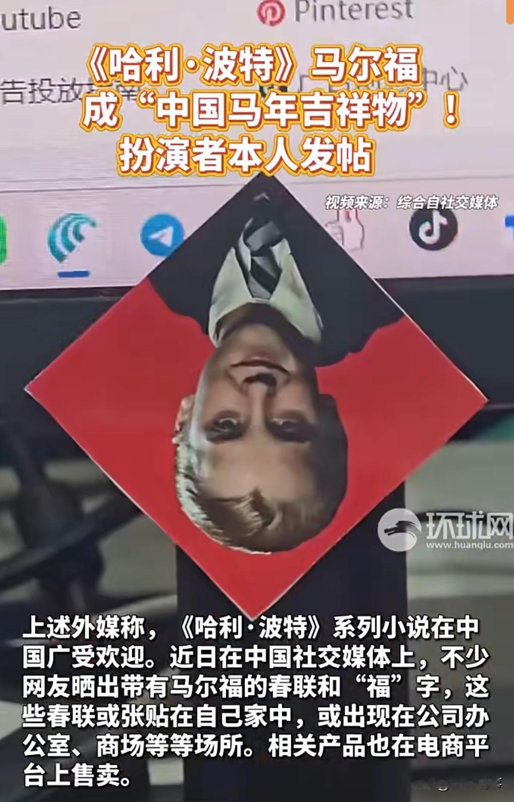 这真是过于抽象了。 《哈利波特》马尔福成中国马年吉祥物。 马尔福是干系列电影里面的一个反派角色,就因为马年,再加上有个福字。 所以马尔福这个角色近日火了,很多人把他的照片倒着贴,意味着福到了。 中国人的仪式感真是拉得满满的。