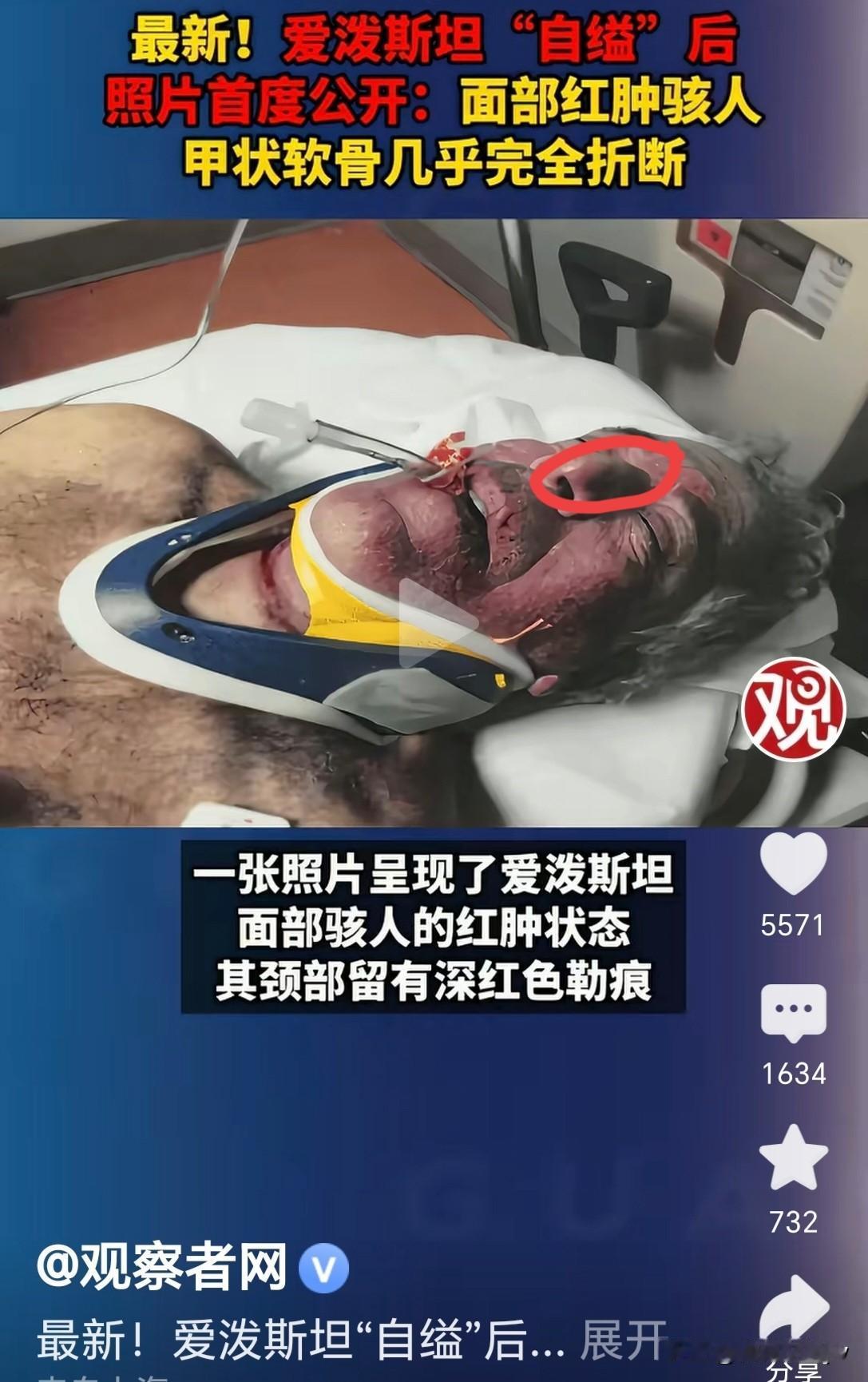 太炸裂了! 爱泼斯坦还活着? 爱泼斯坦自 杀的场面系伪造,假的! 有狱警发帖为证。 你仔细看一下: 他死亡前鼻翼坚挺,死亡后却成了鹰钩鼻,鼻梁弯曲,给人感觉很邋遢。 狱警指证,爱泼斯坦没有自 杀,而是被调了包! 真的假的? 如果狱警所说属实, 那就太可怕了。 美国司 法 部这个谎就撒大了,比想象的还严重! 爱泼斯坦大丑闻 爱泼斯坦性侵案 解封爱泼斯坦案