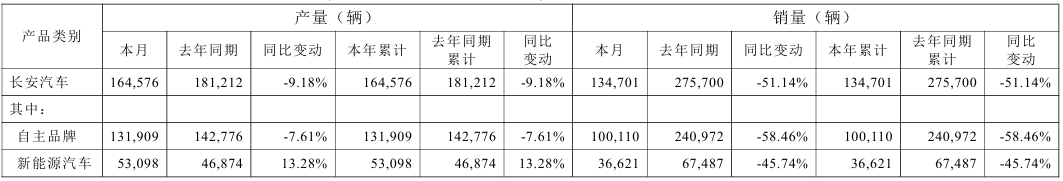 2月4日,长安汽车(000625/200625)发布公告,2026年1月份的产销快报显示,销量为13万辆,同比减少51.14%,其中海外销量4.36万辆。