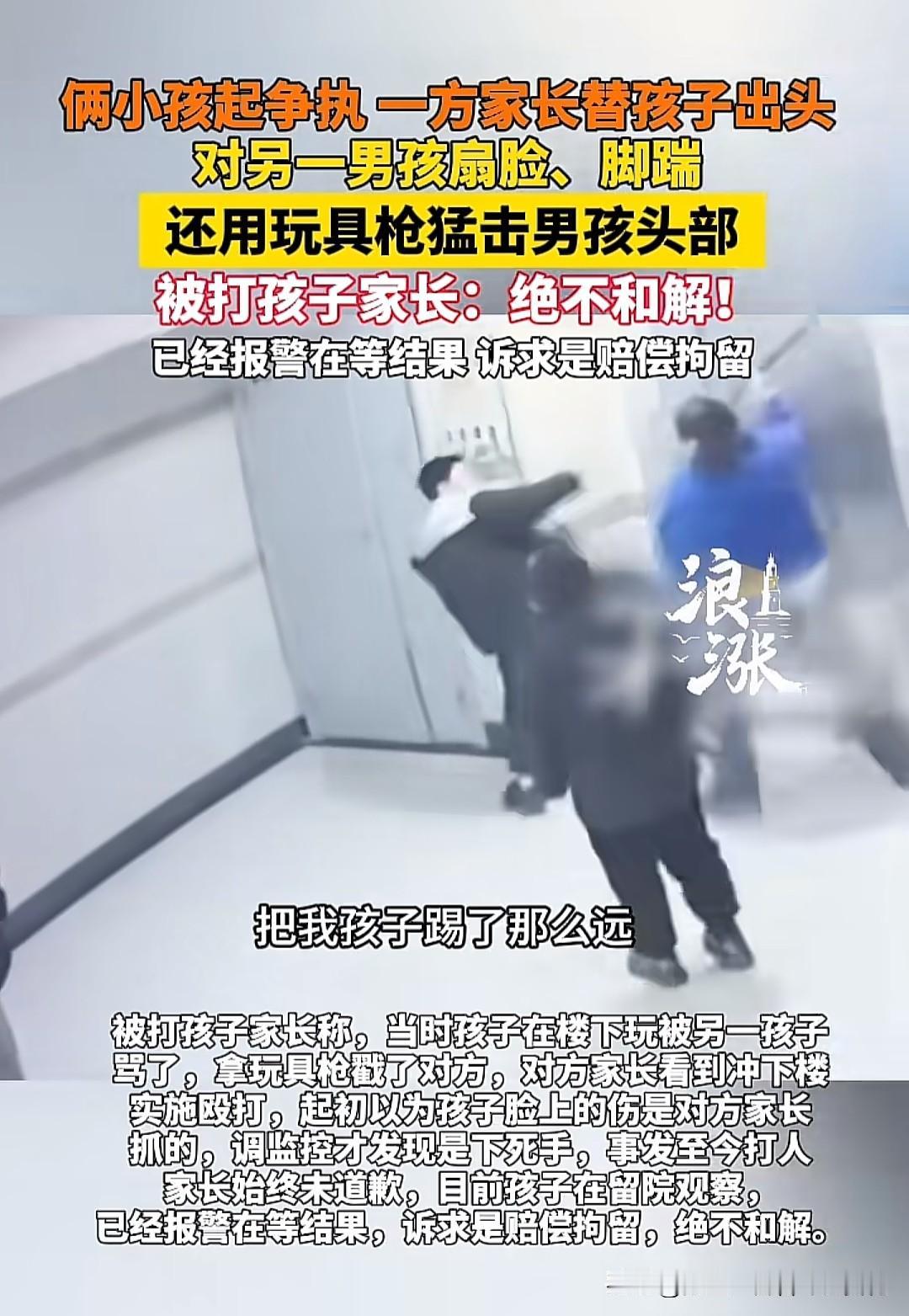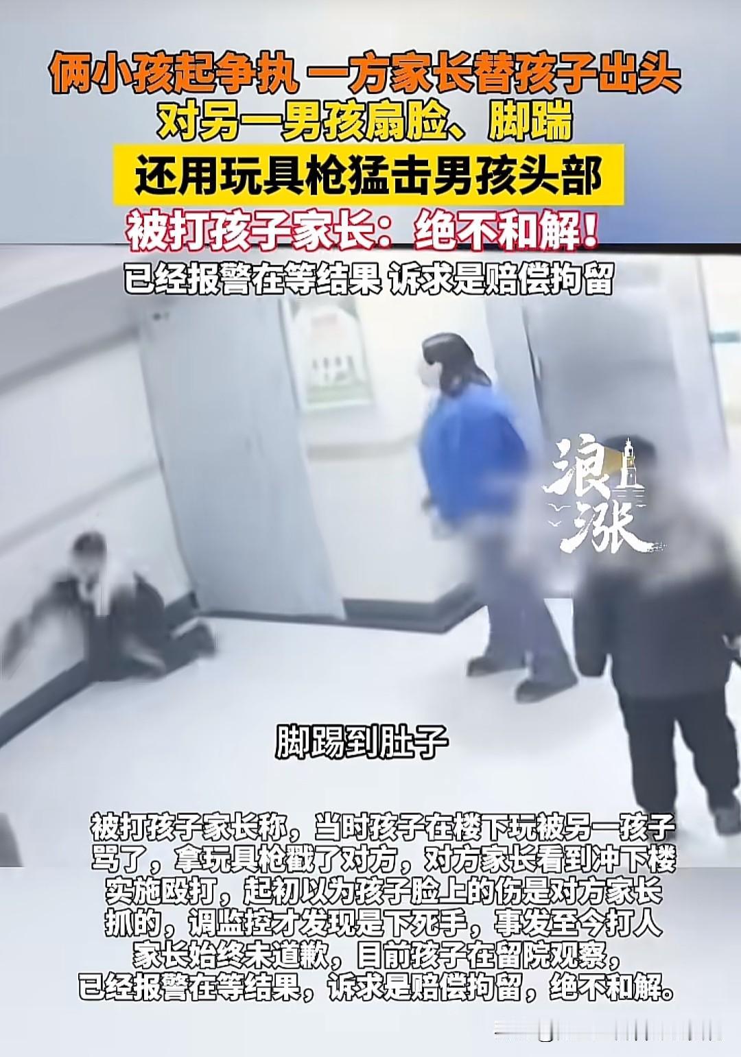 孩子打架,大人该不该替孩子出头?最近,湖北仙桃就有2名小孩起争执,一方家长为替自家孩子出头的。这位家长下手不轻,直接扇脸、脚踹,还用玩具枪猛击别人家孩子头部。不过该孩子没有选择退缩,而是继续大人打斗,结果可想而知,大人毫发未损,小孩伤痕累累。 有网友表示,虽然家长参与打孩子不合适,但看那孩子的表现,绝对是能征惯战的老手,也许经常霸凌其他学生!从监控画面来看,被打孩子确实有跟大人打斗的场面,而且有使用玩具枪去戳的动作,大人只是捡起玩具枪反击了一下。孩子被被大人暴击之后,瞬间就老实了。 不得不说,这孩子也够狠的,大人面前也敢反抗,估计父母也很难管教他。有些孩子确实坏的很,家长管不了,只能让别人替家长来管。成年人是理性的,不会无缘无故的去打别人家的孩子,这个孩子肯定不简单,打人出头很有必要。
