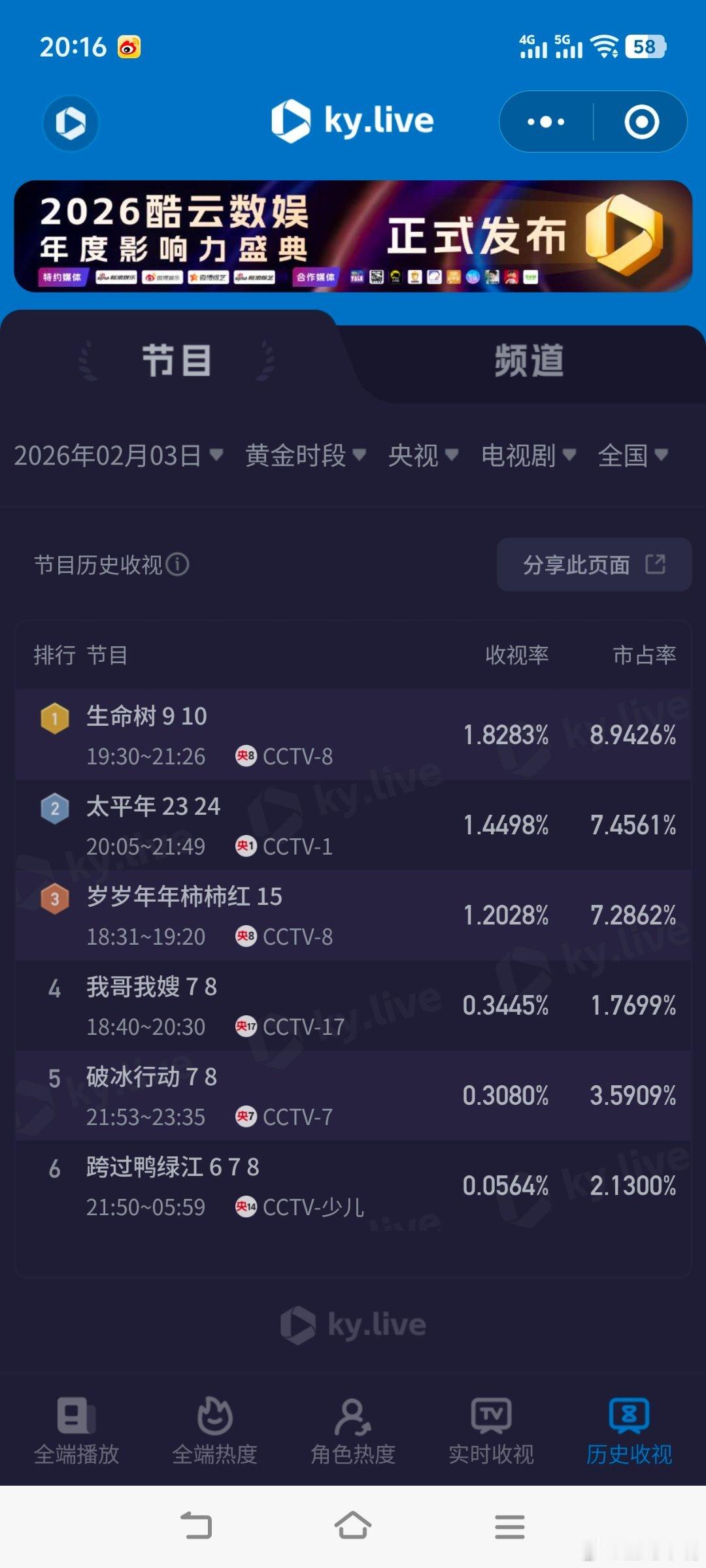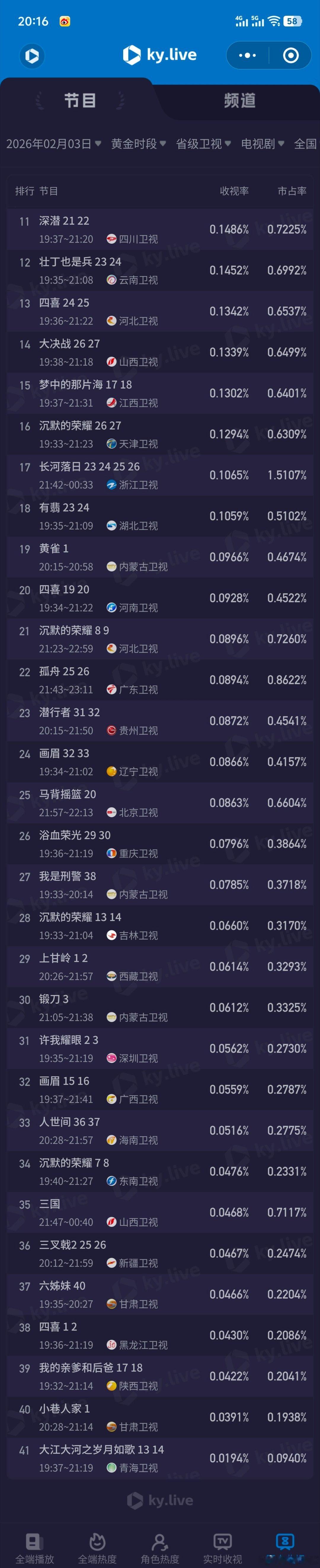 生命树云合评级S2月3日cvb收视日报