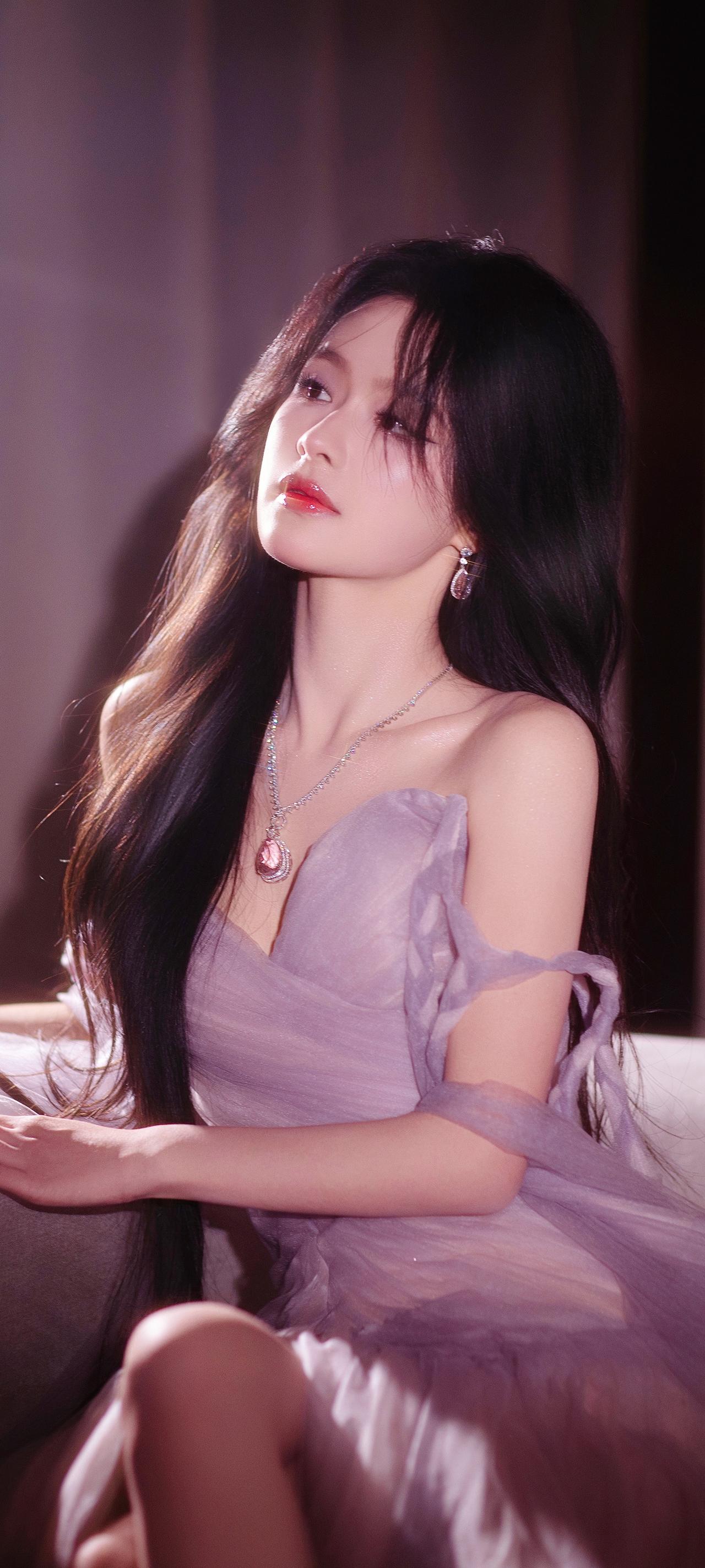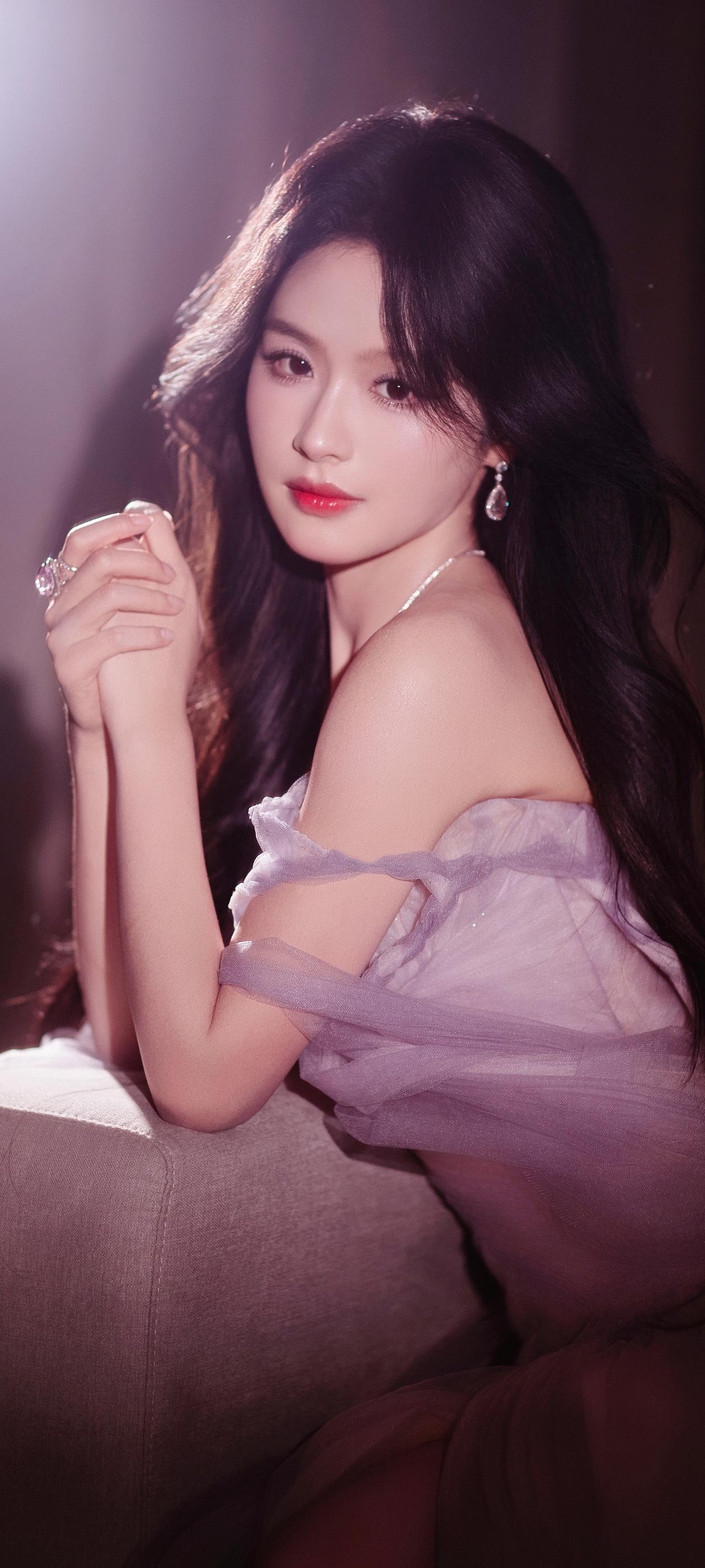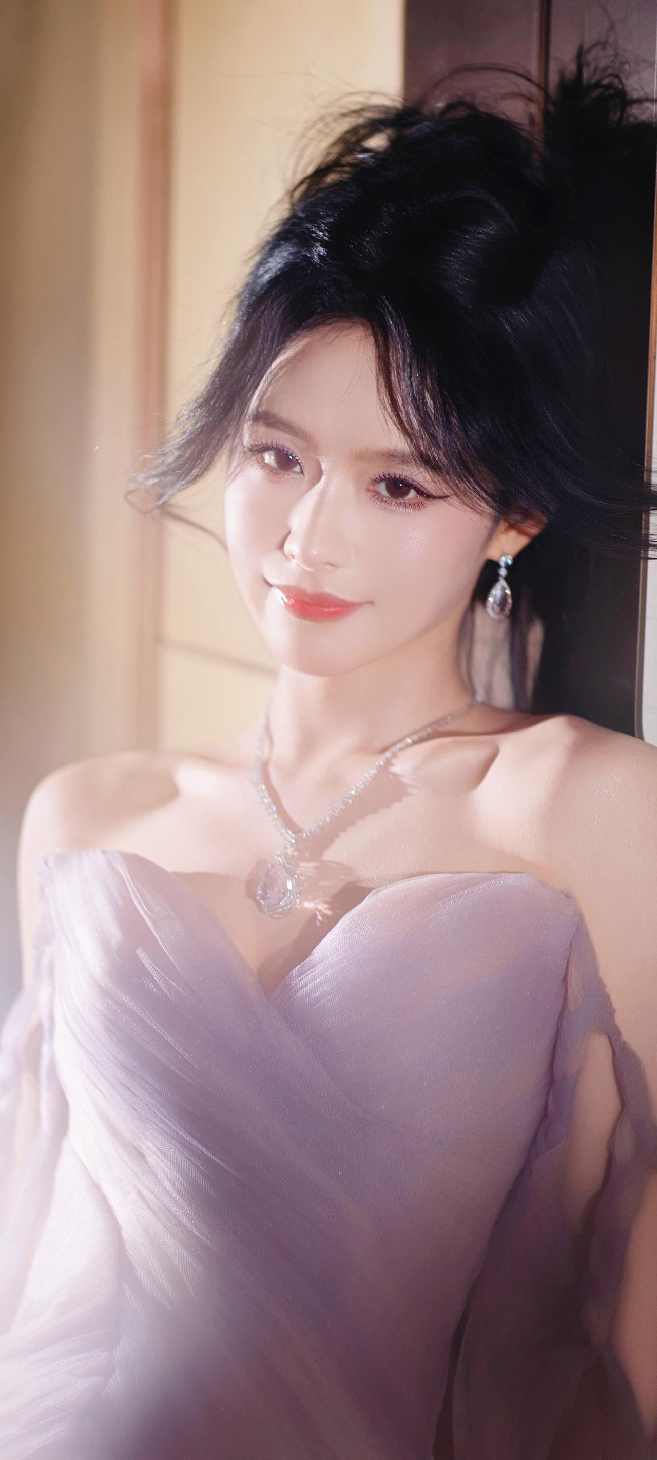 《紫纱凝香》 紫纱轻曳覆凝脂,皓腕明珰映暖曦。 笑靥半含春欲语,一帘幽梦惹相思。