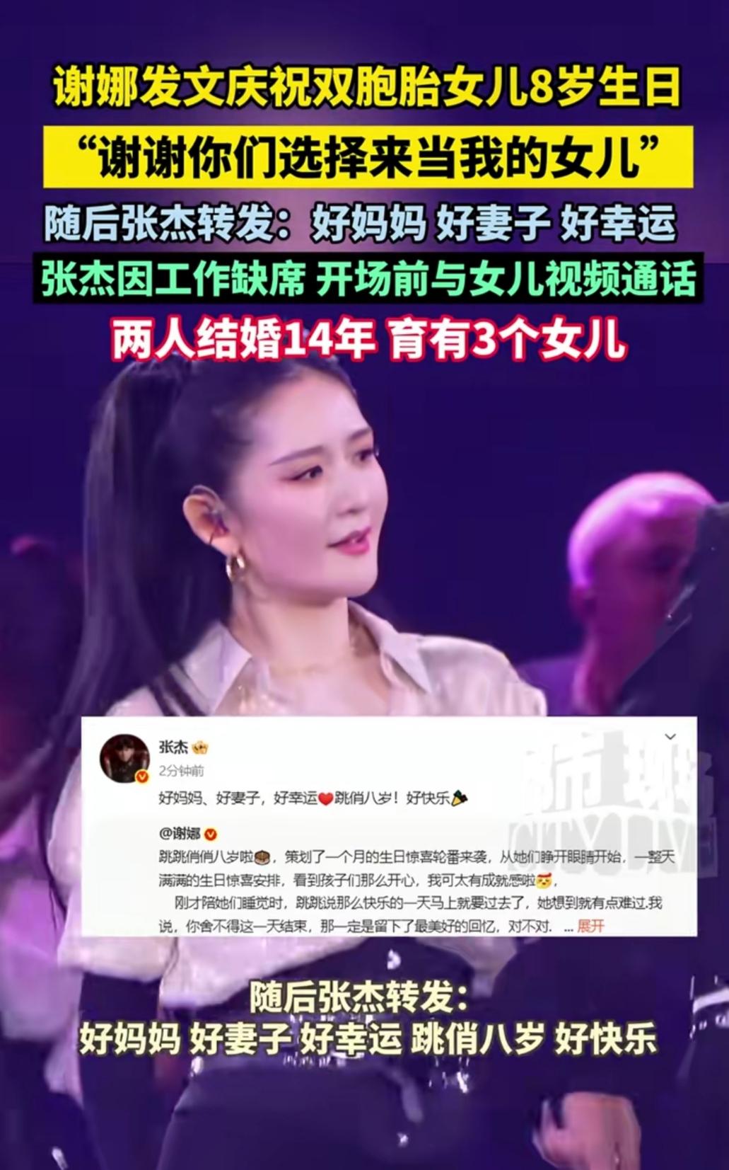 内娱又被一对夫妻的温柔戳中了!有人说恩爱是演的,可藏在细节里的真心,从来都骗不了人,尤其是在孩子生日这一天,所有的默契与偏爱都藏不住了。 谢娜为双胞胎女儿八岁生日忙前忙后,提前一个月策划惊喜,用暖心小游戏化解孩子的小情绪,一句“谢谢你们选择来当我的女儿”,满是柔软的母爱。字里行间的细碎美好,都是用心陪伴的证明。 远在成都开演唱会的张杰,没能陪在身边却从未缺席。舞台上带着数万观众为女儿送祝福,献唱专属的暖心歌曲,演唱会一结束就火速转发,一句“好妈妈、好妻子,好幸运”,道尽了对谢娜的认可与珍惜。 从最初的不被看好,到如今十八年的相守,他们在聚光灯下经历过太多争议,却始终把彼此的付出放在心上。没有轰轰烈烈的告白,只有细水长流的陪伴,这样的感情,终究抵过了所有流言。