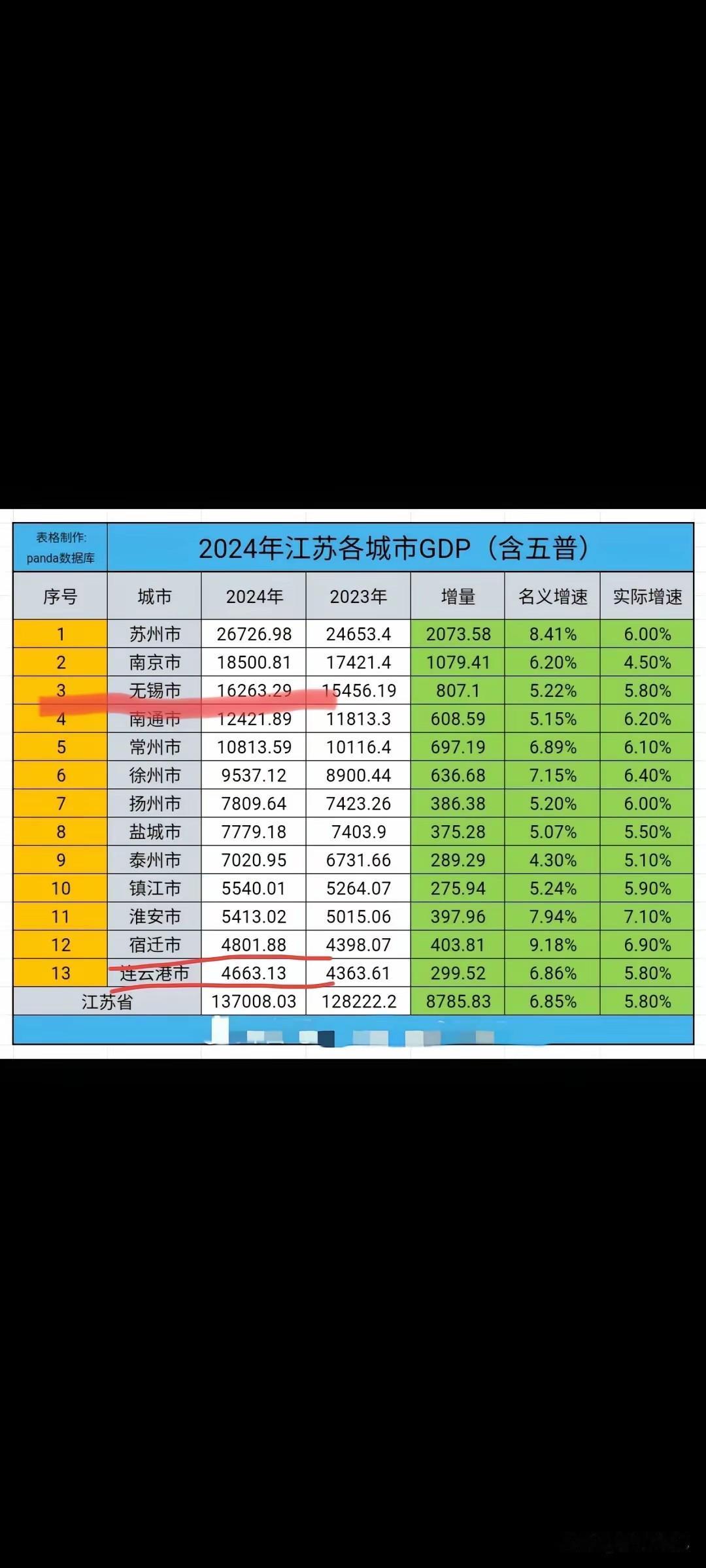 整体来看,江苏的GDP增长乏力啊,7000多亿的泰州增长还没宿迁高,只有南京苏州