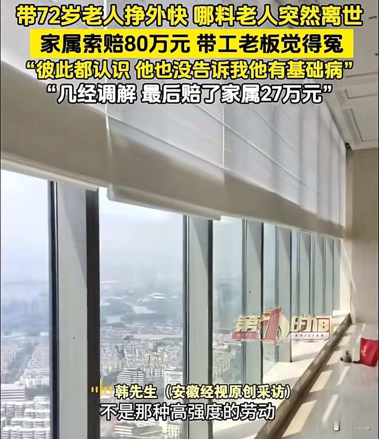 浙江杭州,男子带72岁老人出门挣外快,让老人帮忙递下东西什么的,可老人突然倒地离世,家属索赔80万。男子:老人没说有基础病,干活时间长了,诱发了心脏病复发,事情因我而起,当时自己尽全力施救了,现在也会尽全力赔偿。 韩先生说自己带72岁老人出门挣外快,可老人却出了意外,突然倒地不起了。 老人是公司楼下的门卫,大家相互熟悉,平日里,韩先生有递东西之类的轻便活,总会叫上老人一起,让老人能挣些外快补贴家用。 在韩先生看来,这些活儿强度不大,老人做起来也不费劲,双方各取所需,相处融洽。 事发当天,韩先生像往常一样,带着老人从湖州前往杭州,去做安装窗帘的工作,一路上,大家有说有笑,谁也没想到意外正悄然降临。 当晚,老人在工作现场突然倒地不起,韩先生和在场的人立刻展开抢救,有人拨打急救电话,有人尝试进行急救措施,可尽管大家拼尽全力,老人最终还是没能抢救过来,永远地离开了人世。 这突如其来的噩耗让老人家属悲痛欲绝,他们认为老人之所以会死亡,是因为跟着韩先生出去干活,他们觉得韩先生应该对老人的死负责,向韩先生索赔80万元。 韩先生心里也十分难受,老人事先并未告知自己有基础病,干活时间长了,诱发了心脏病复发,但是此事确实是因自己而起,自己也有责任。 事发当时他已经尽全力去施救了,事后自己也会尽全力进行赔偿,但是家属一下子要80万,这责任太重了,自己也难以承受。 后经多次调解,韩先生最终赔偿了老人家属27万元。 在这件事情中,韩先生是否需要承担赔偿责任呢? 《民法典》第1192条规定:个人之间形成劳务关系,提供劳务一方因劳务受到损害的,根据双方各自的过错承担相应的责任。 韩先生带老人出去干活,本意是为了让老人挣点外快,出发点还是好的,但是老人在这个过程中,因干活时间太长,引起心脏病复发去世,韩先生是需要承担一定的赔偿责任的。 但是老人作为完全民事行为能力人,有义务如实告知自己的身体状况,老人未告知自身有基础病,这在一定程度上影响了韩先生对其工作安排和风险防范的判断。 《民法典》第1173条规定:被侵权人对损害发生有过错的,可减轻侵权人责任。 老人未告知基础病,隐瞒重大健康信息,其自身也需要承担一定责任。 对于此事,大家怎么看?
