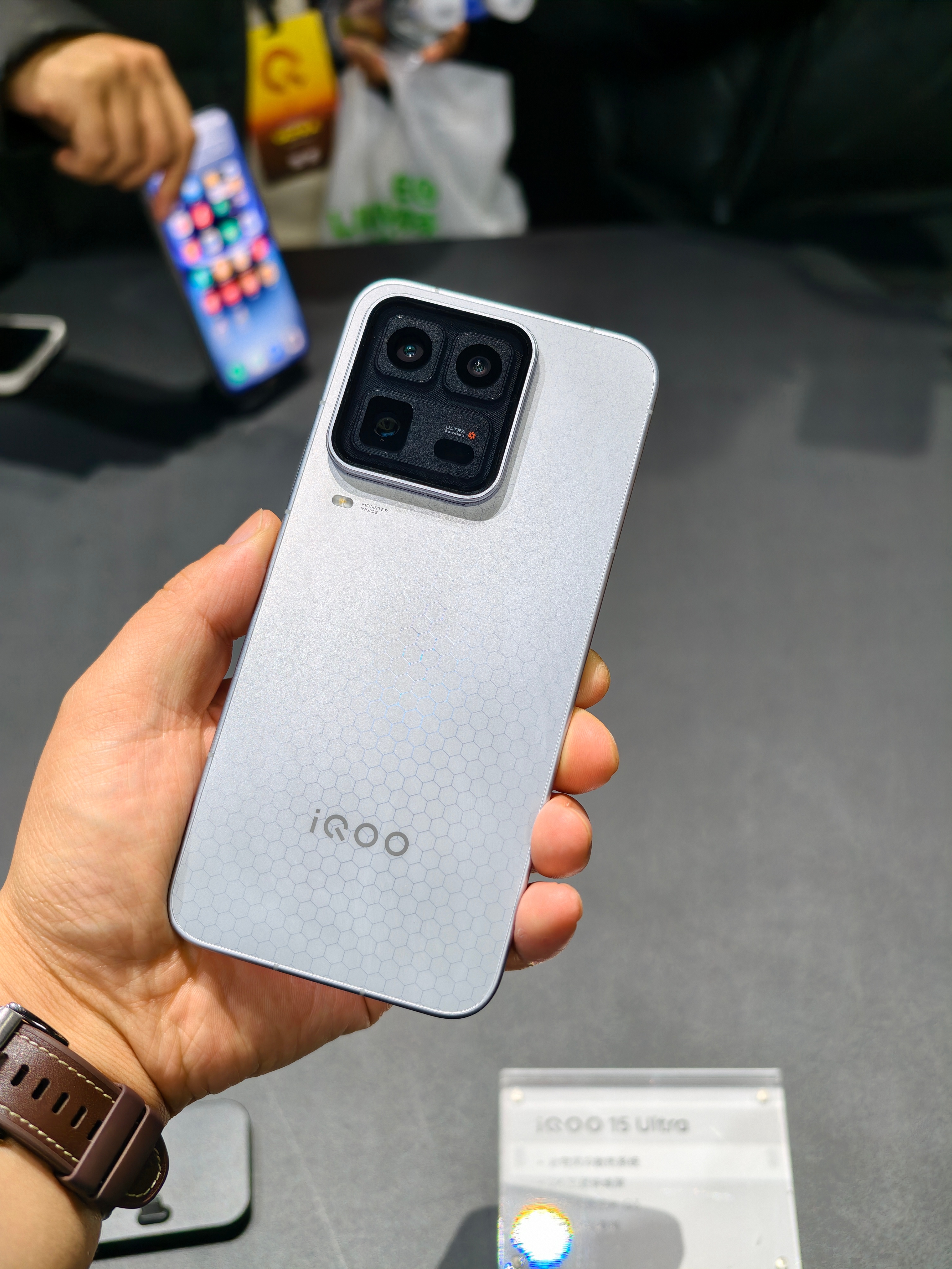 展区摸了一下iQOO15 Ultra白色版本,个人感觉这个配色更好看一些,很有高级感和未来感