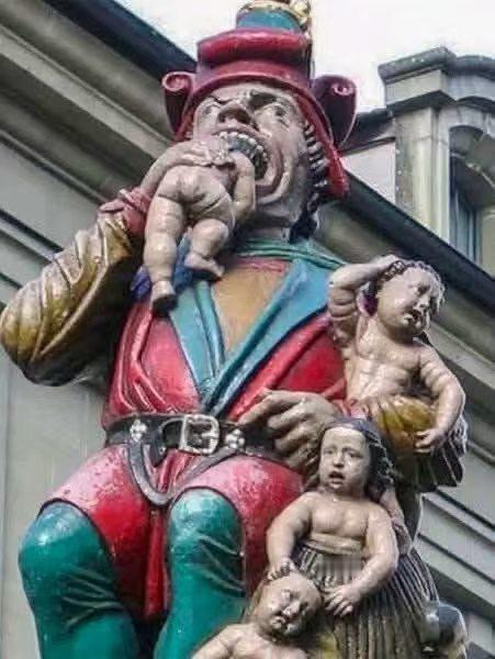 真实存在的瑞士食童喷泉! Grok的其中一种解释是:用于吓唬不听话的小孩的民间