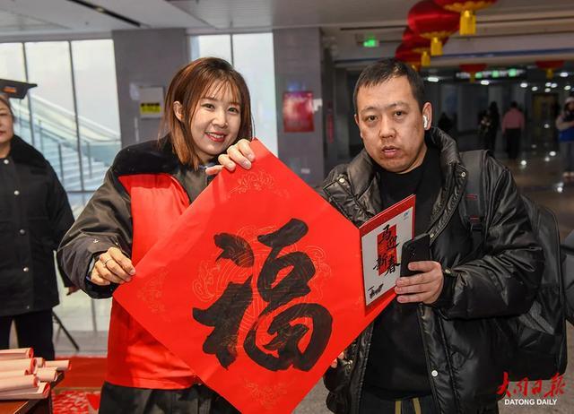当天上午,大同综合客运中心地下通道服务大厅内热闹非凡,公交职工现场挥毫泼墨、迎新开笔,一张张翰墨飘香的“福”字,化作最真挚的新春祝福送到归乡旅客手中。